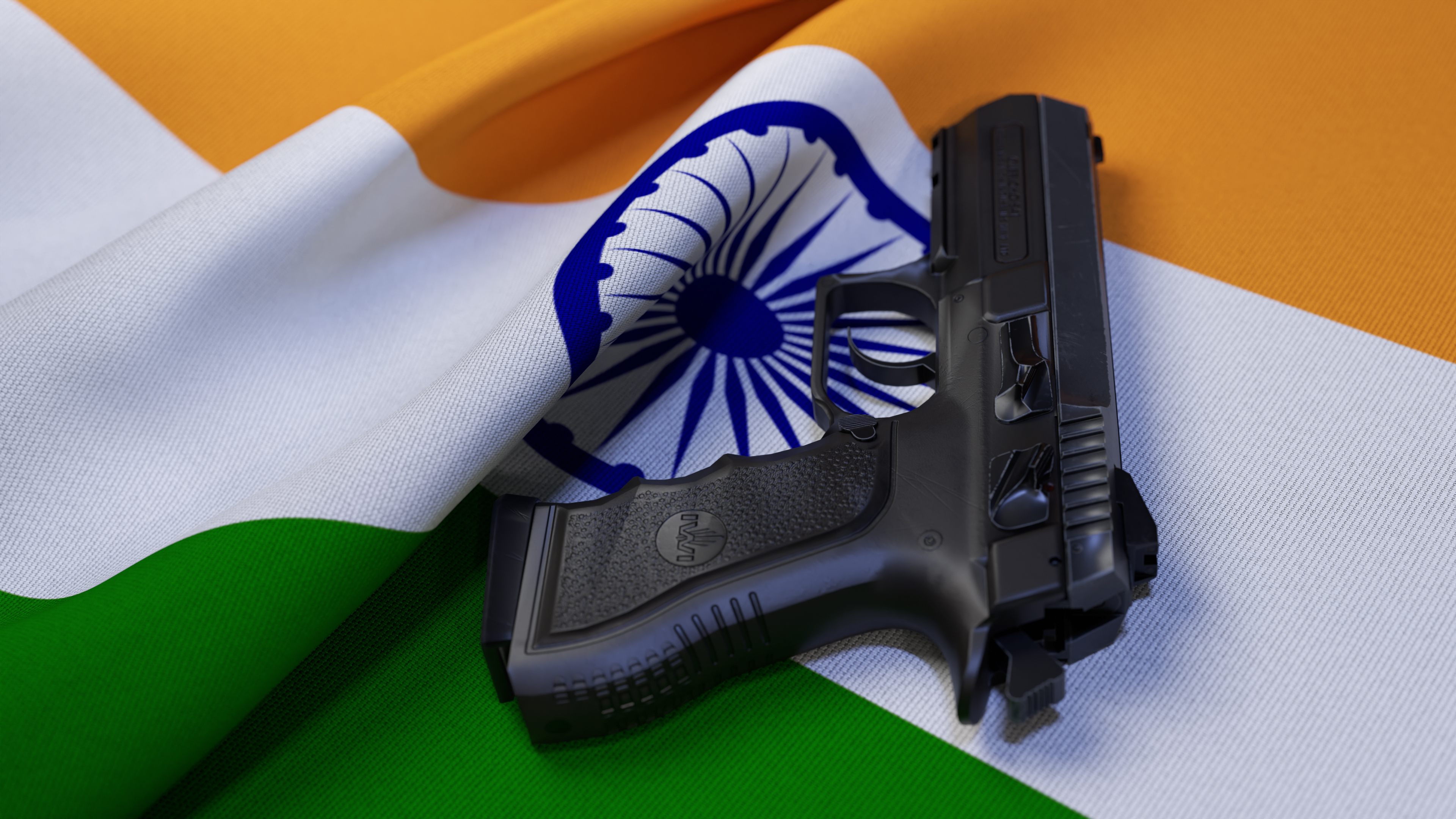 A black pistol on the flag of India