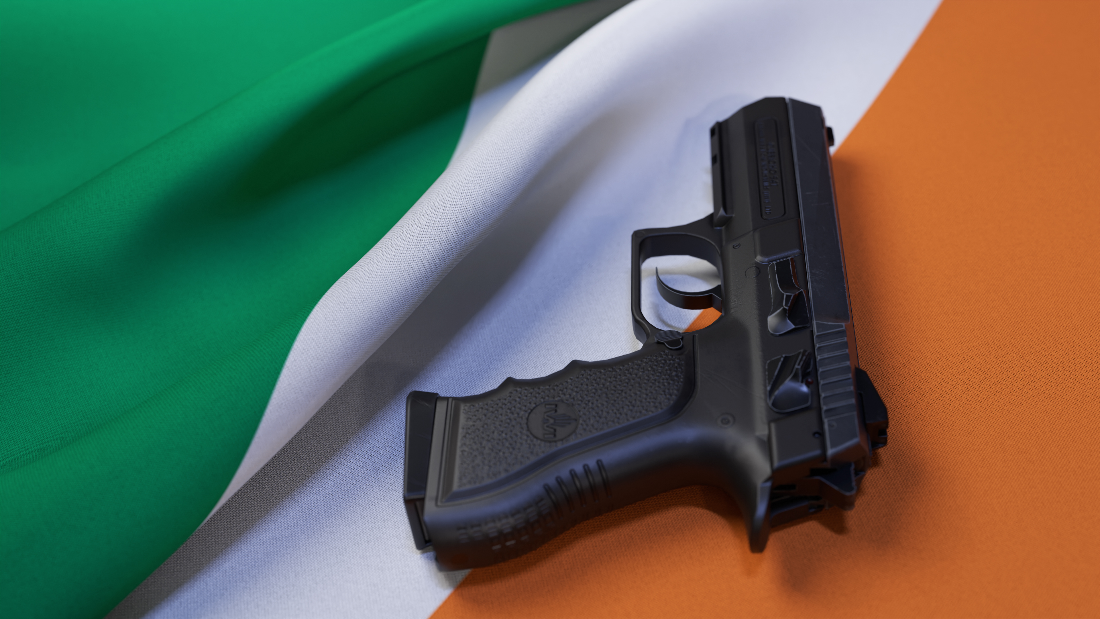A black pistol on the flag of Ireland