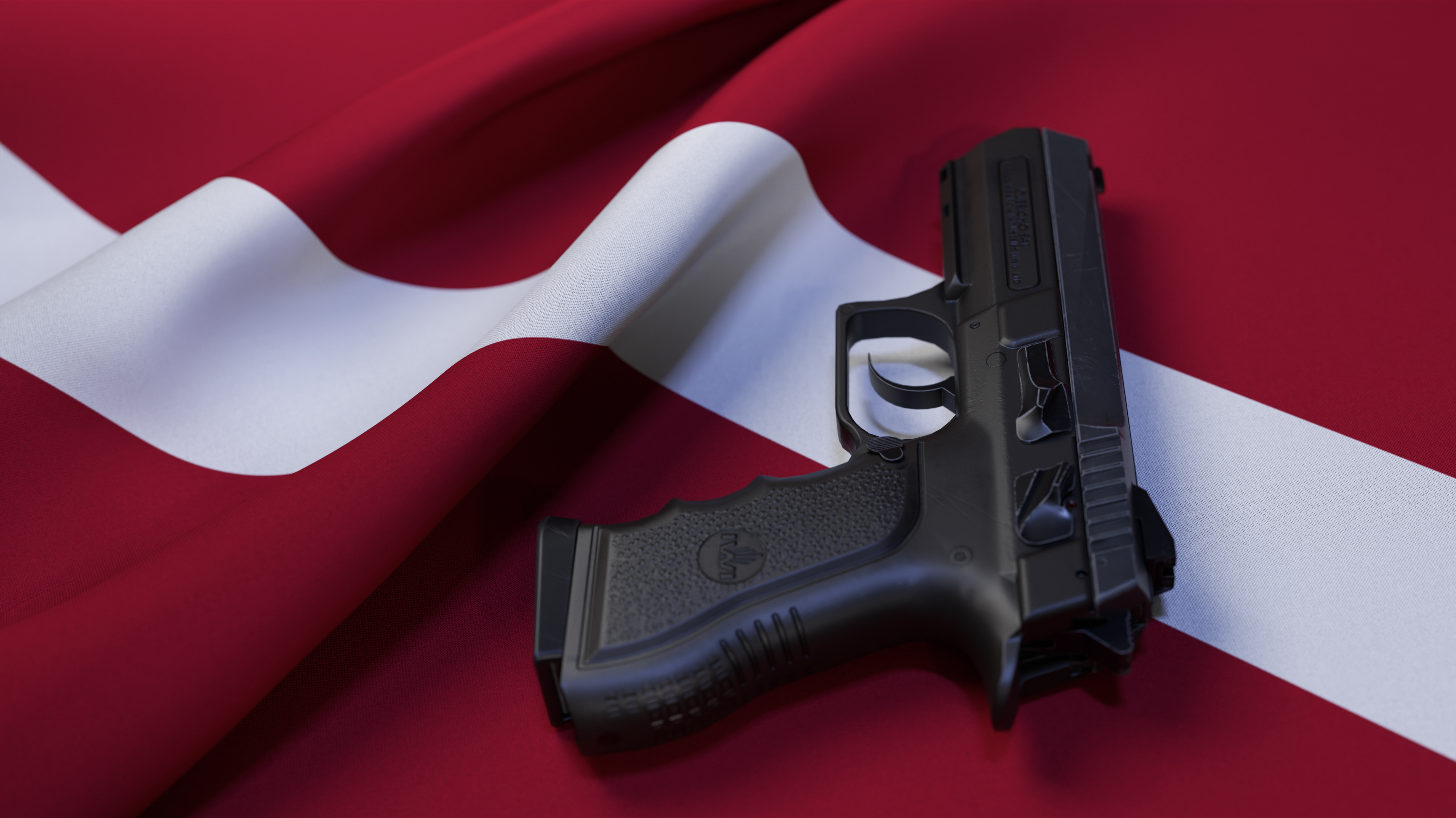 A black pistol on the flag of Denmark
