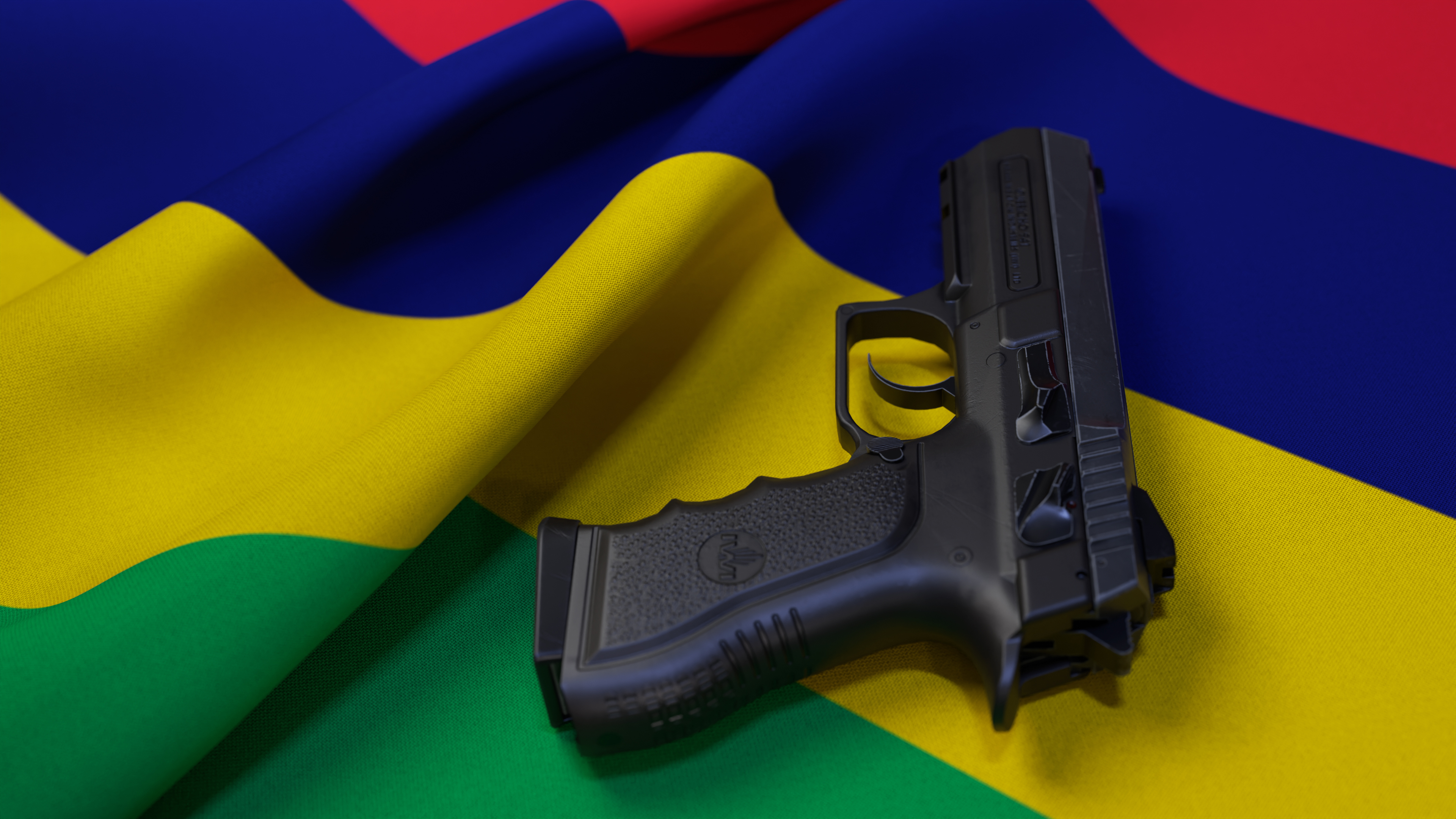 A black pistol on the flag of Venezuela