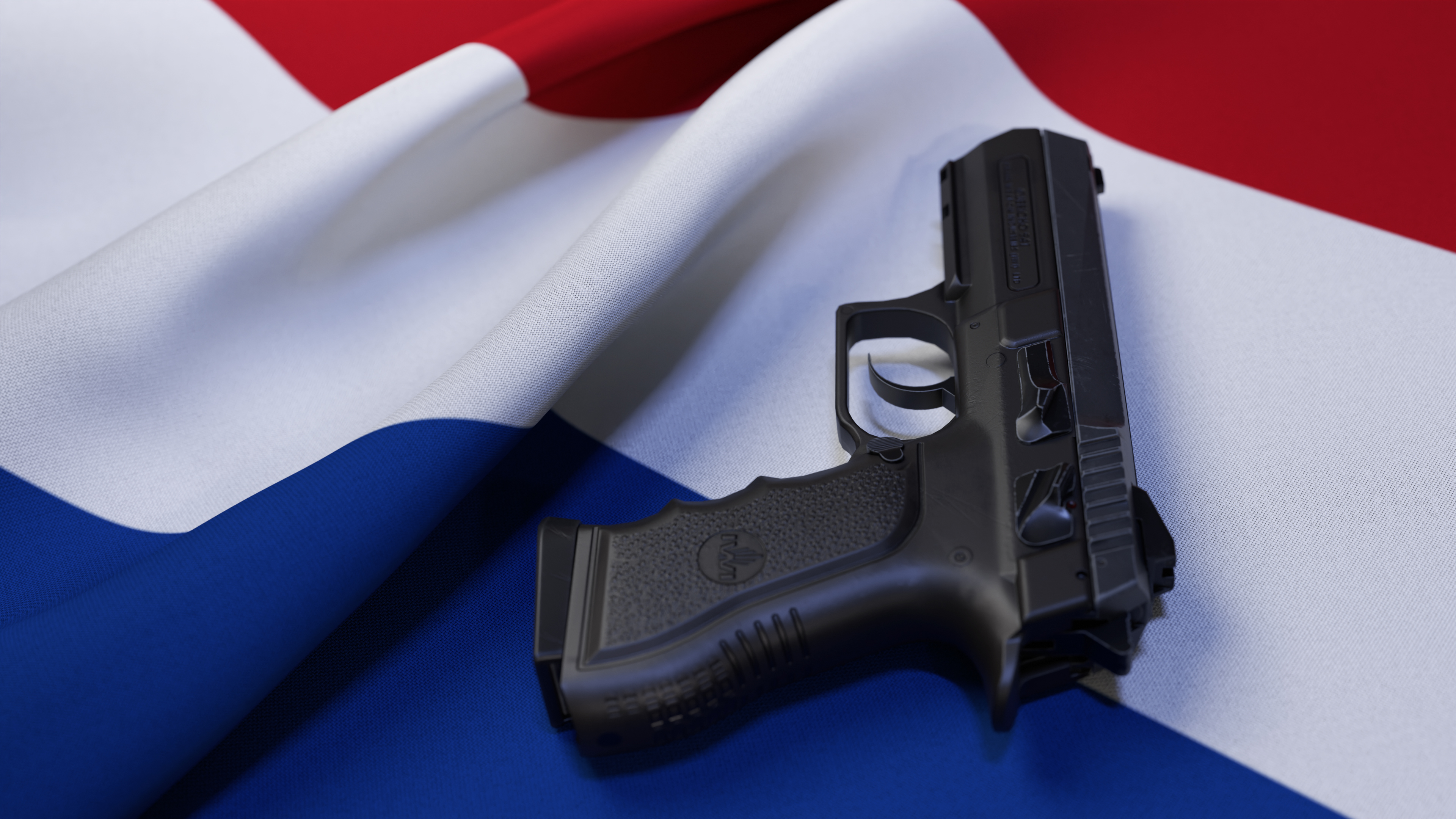 A black pistol on the flag of Netherlands
