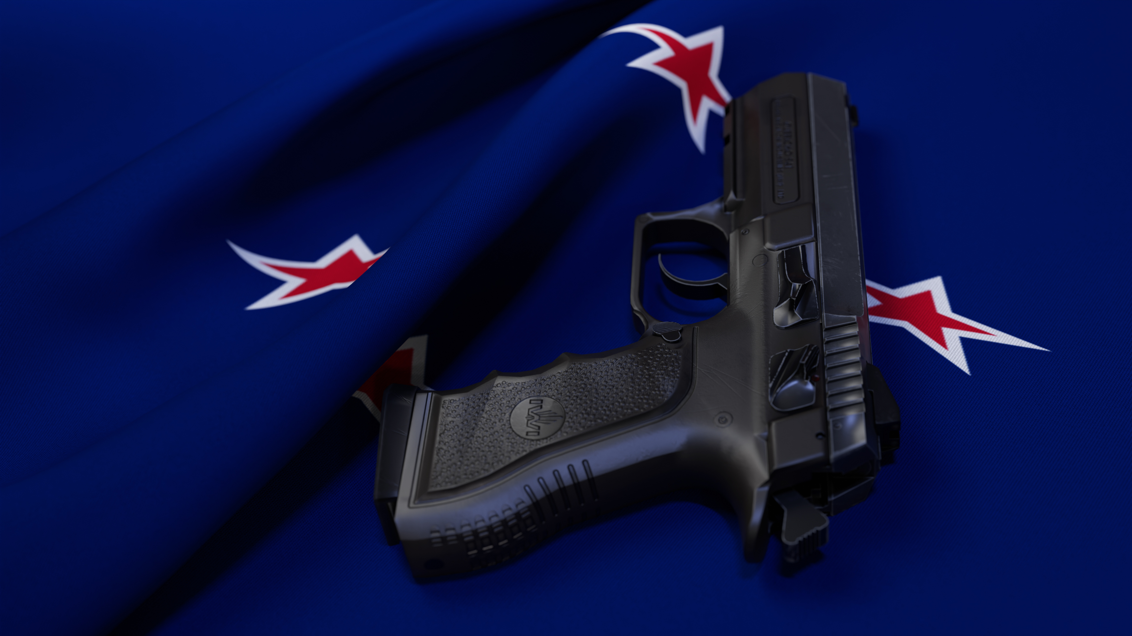 A black pistol on the flag of New Zealand