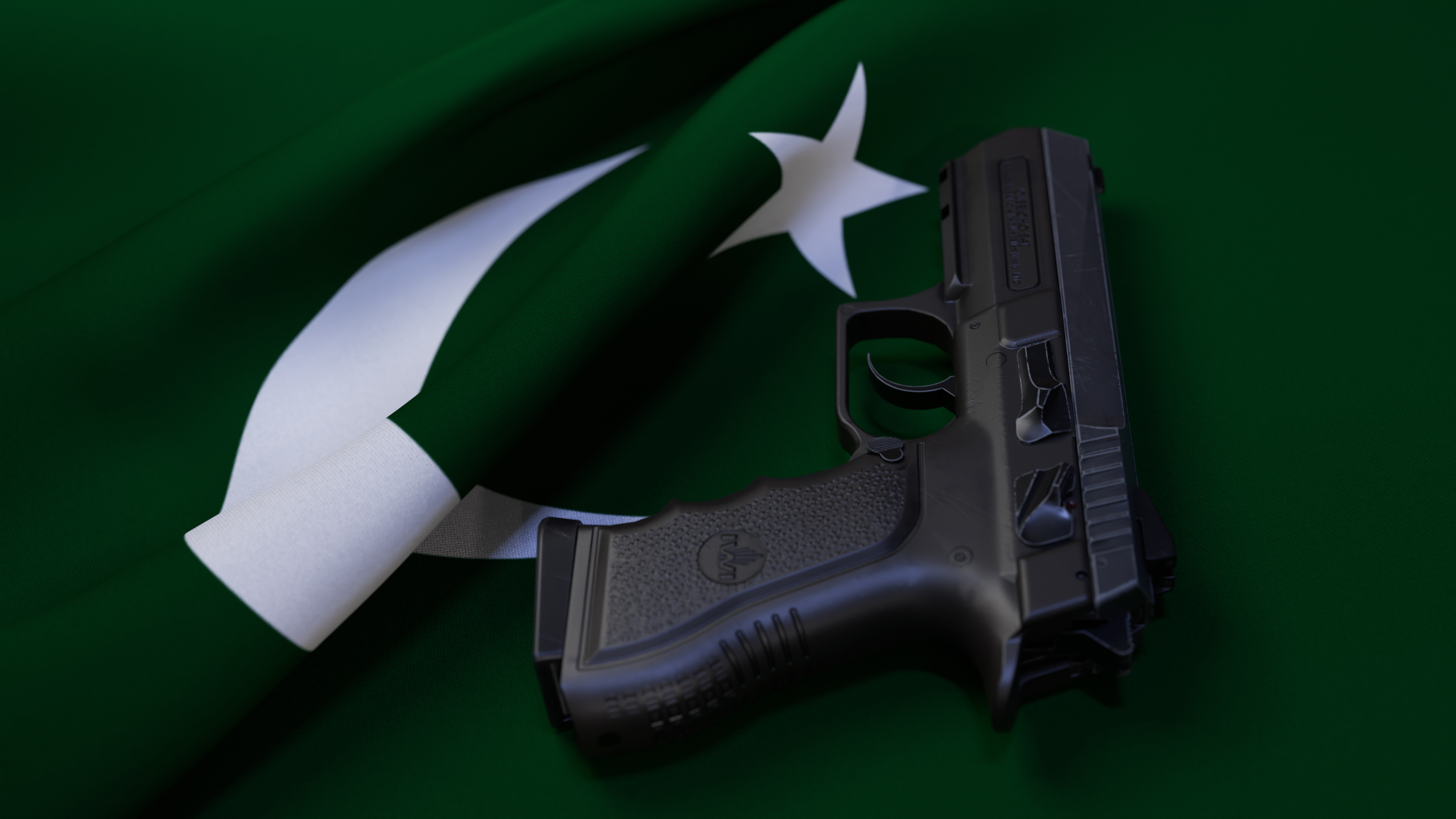 A black pistol on the flag of Pakistan
