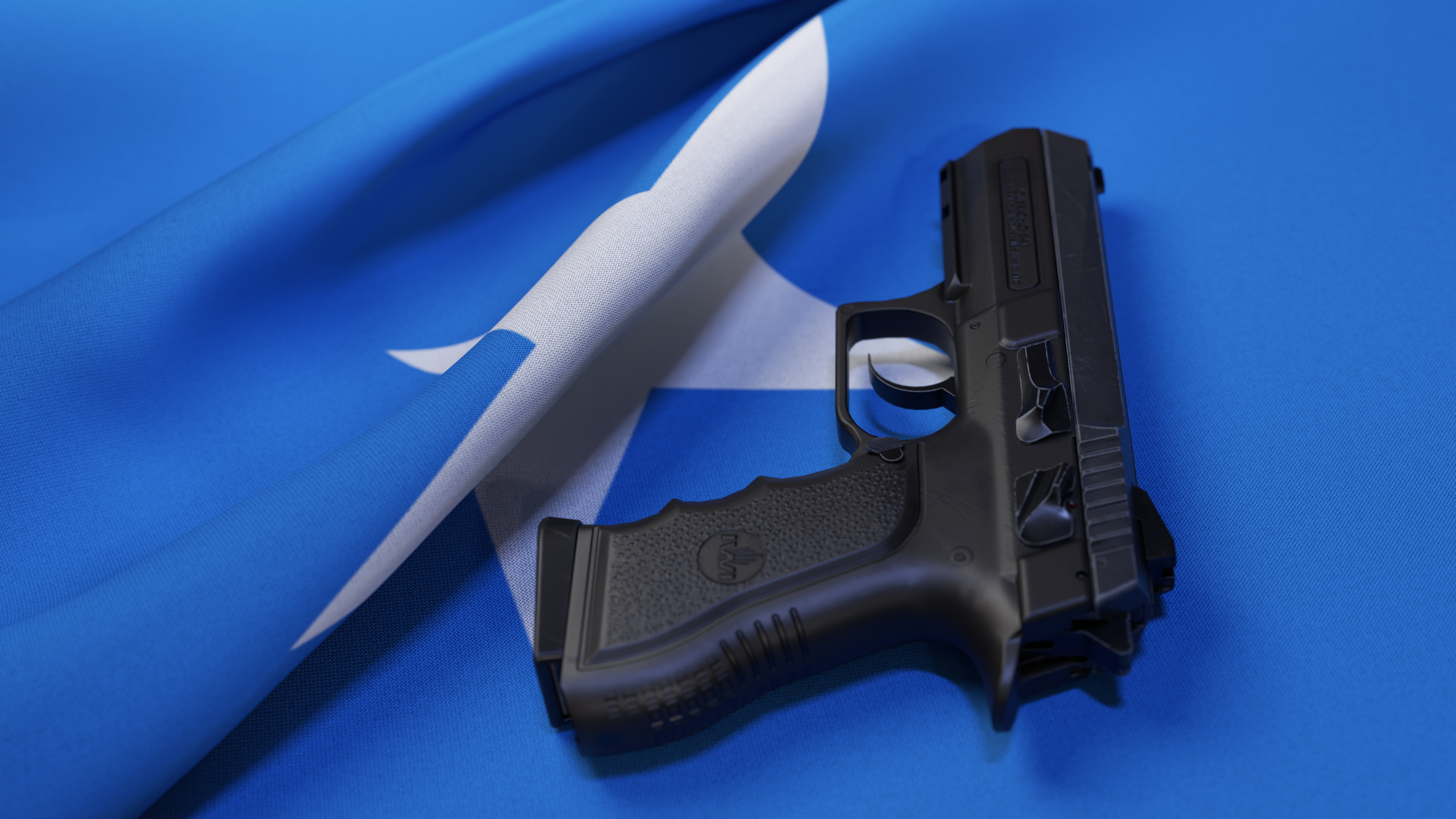 A black pistol on the flag of Israel