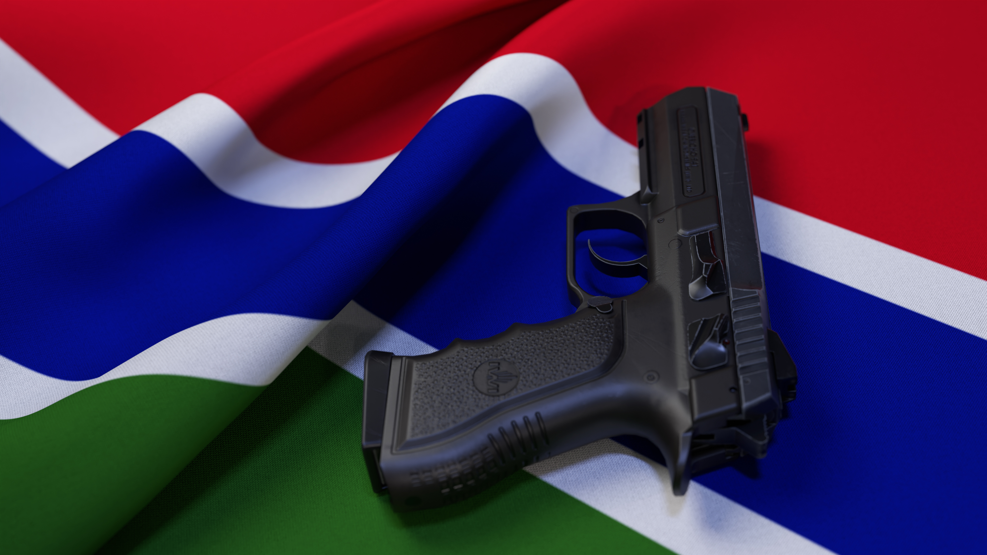 A black pistol on the flag of The Gambia