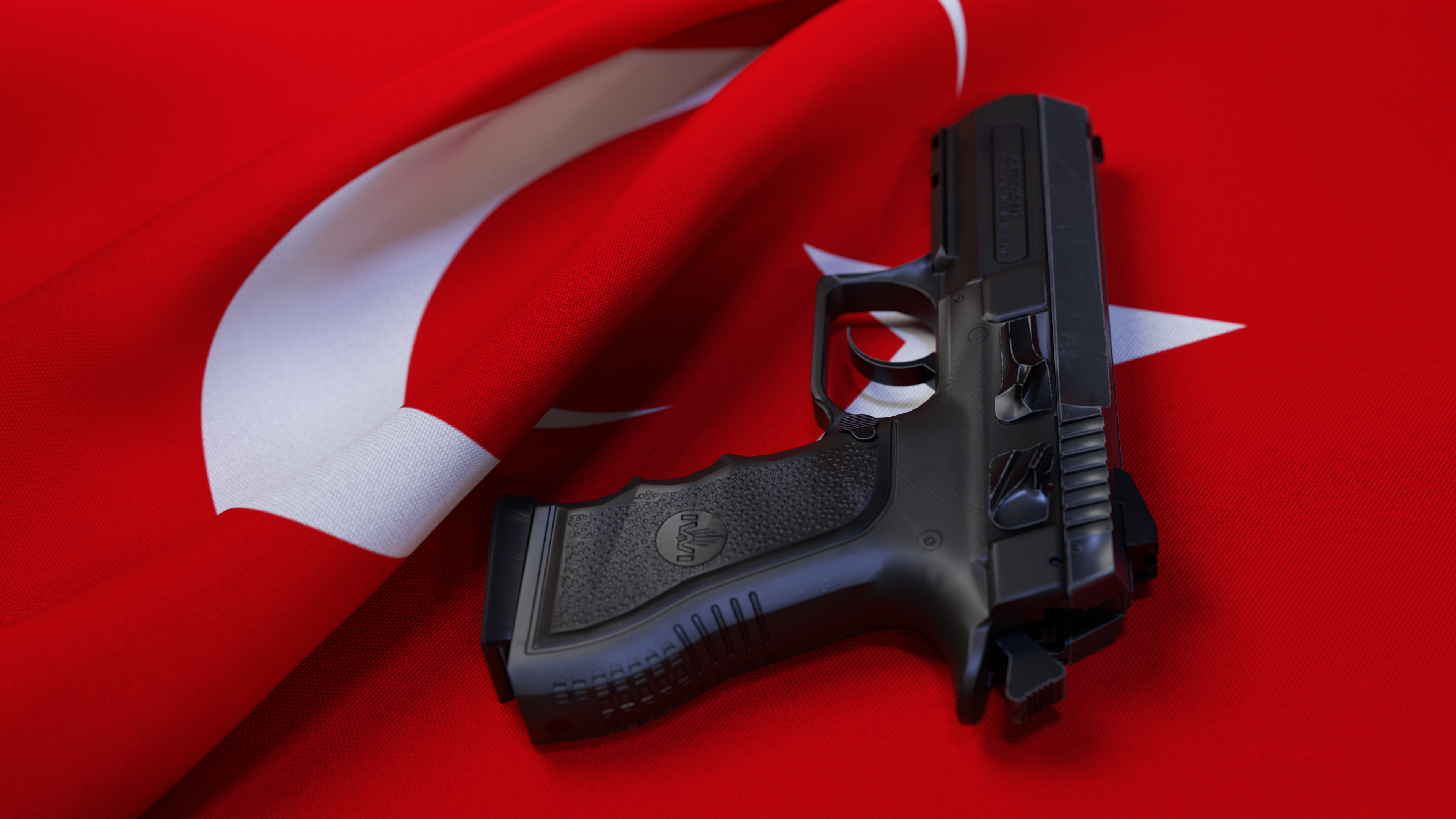 A black pistol on the flag of Turkey