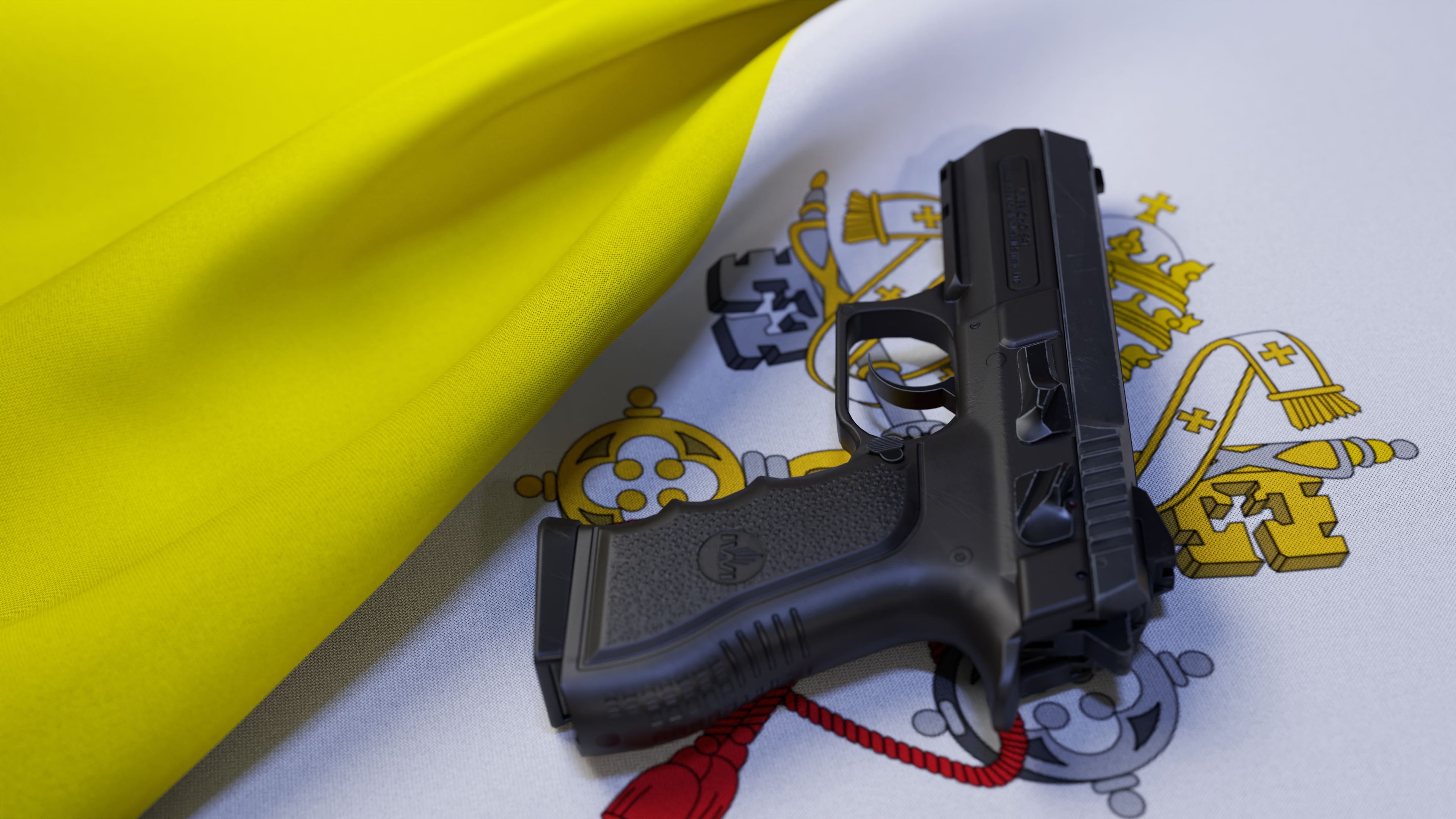 A black pistol on the flag of Vatican City
