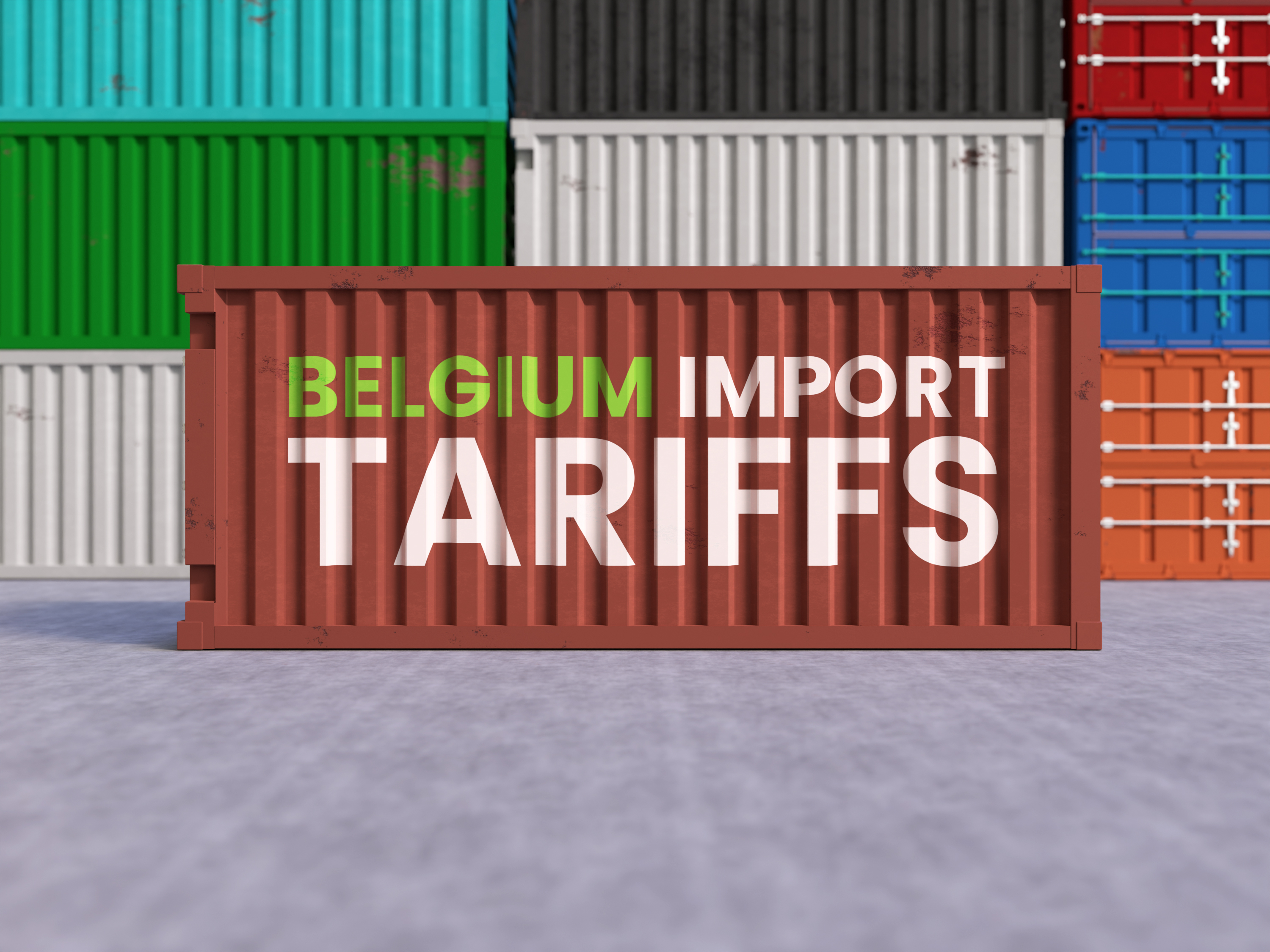 Belgium Import Tariffs Label on Shipping Container Representing Global Trade Tensions