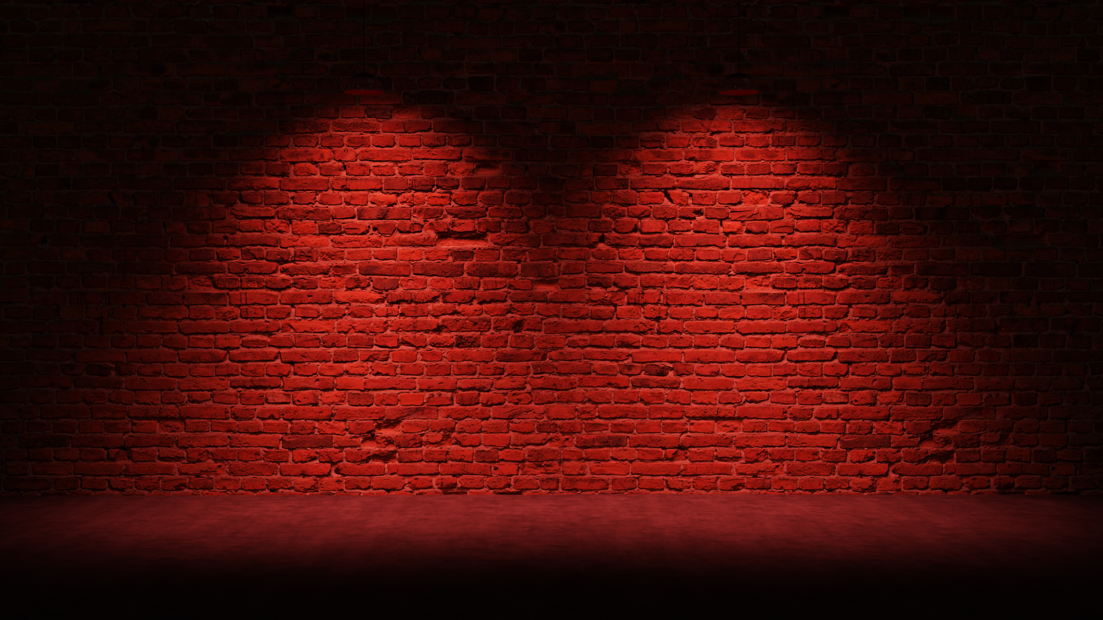 Brown brick wall background with spot lighting effect. Red, Red, Red