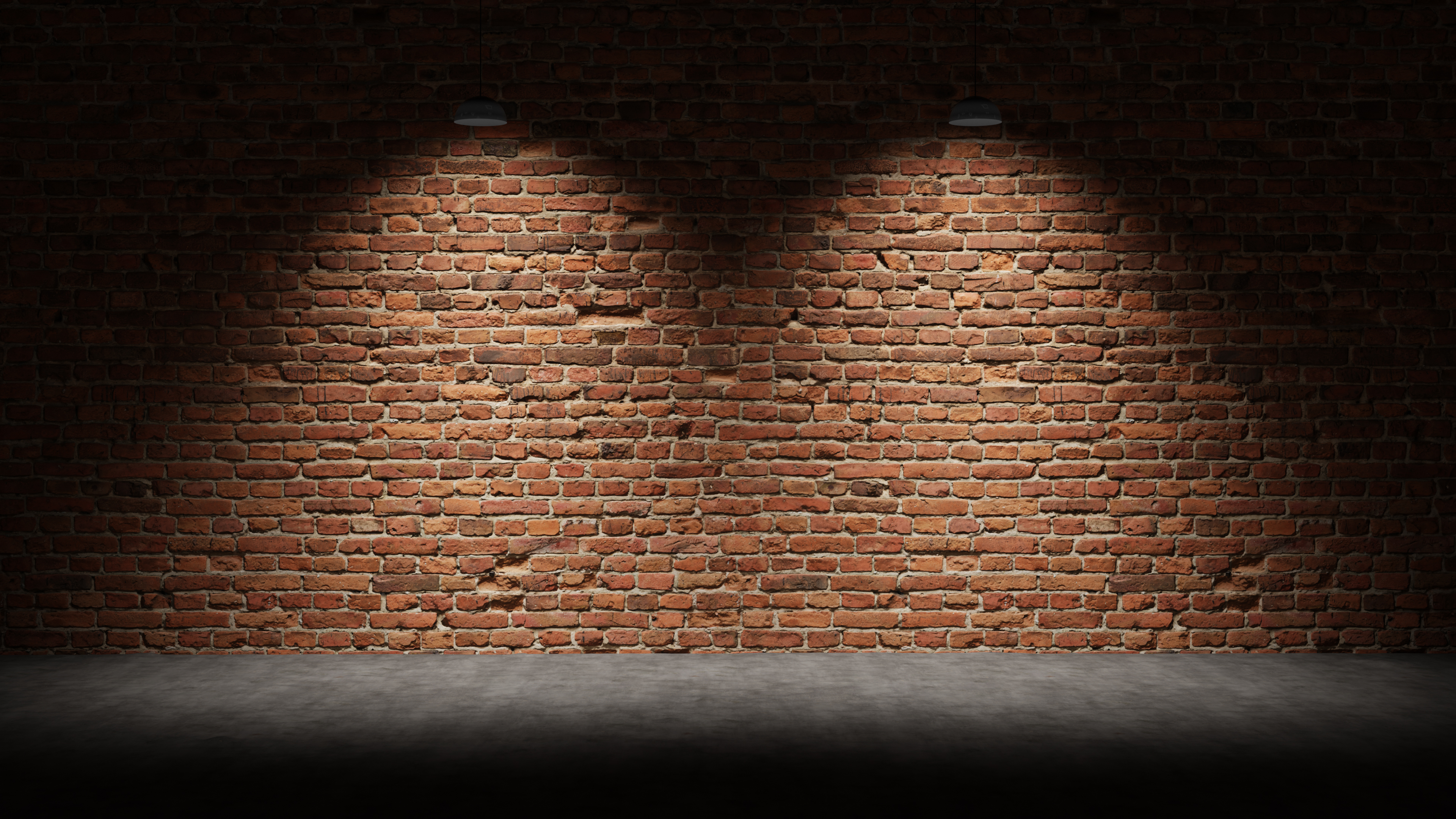 Brown brick wall background with spot lighting effect. Red, White and Red