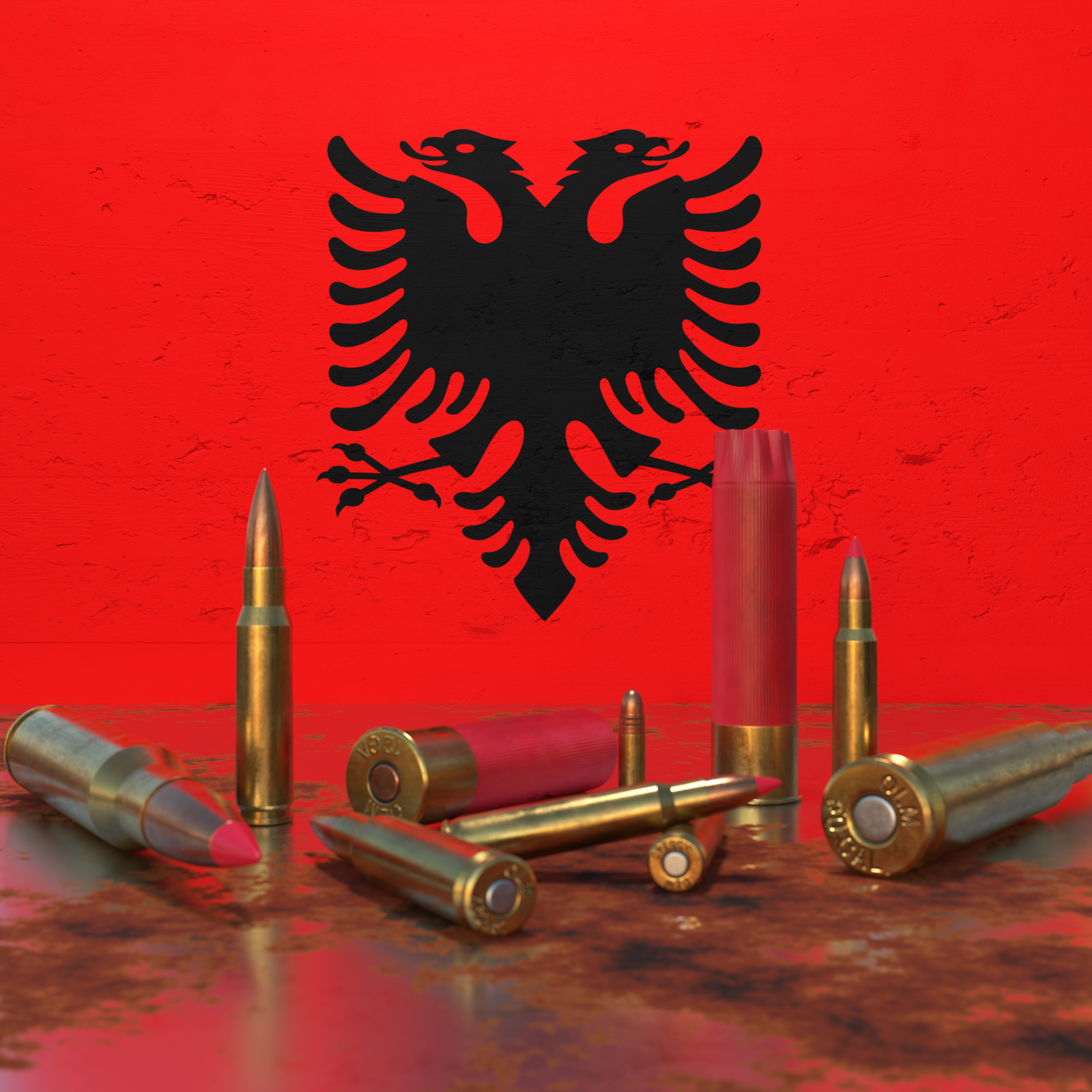 Bullets in front of Albanian flag