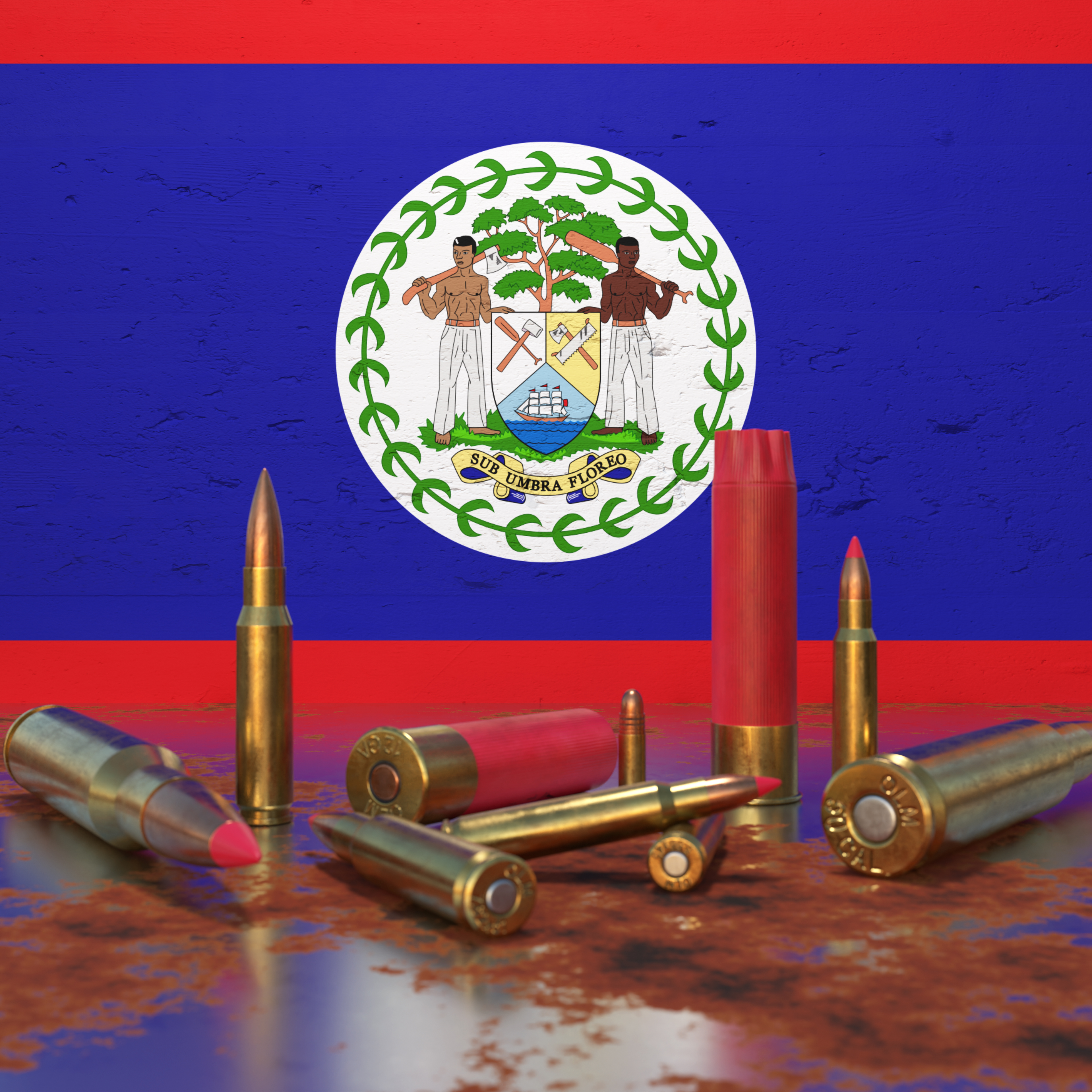 Bullets in front of Belize flag