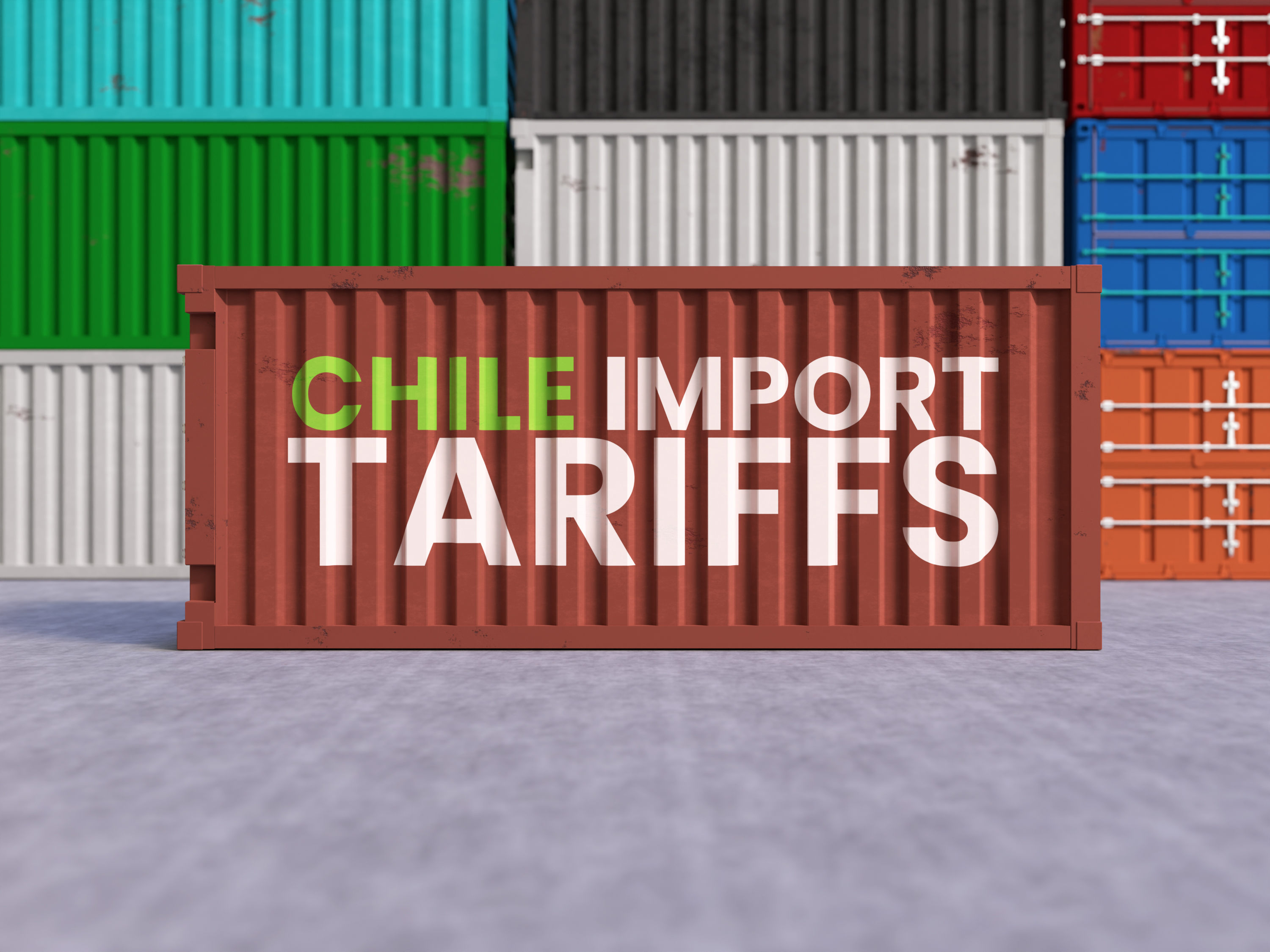 Chile Import Tariffs Label on Shipping Container Representing Global Trade Tensions
