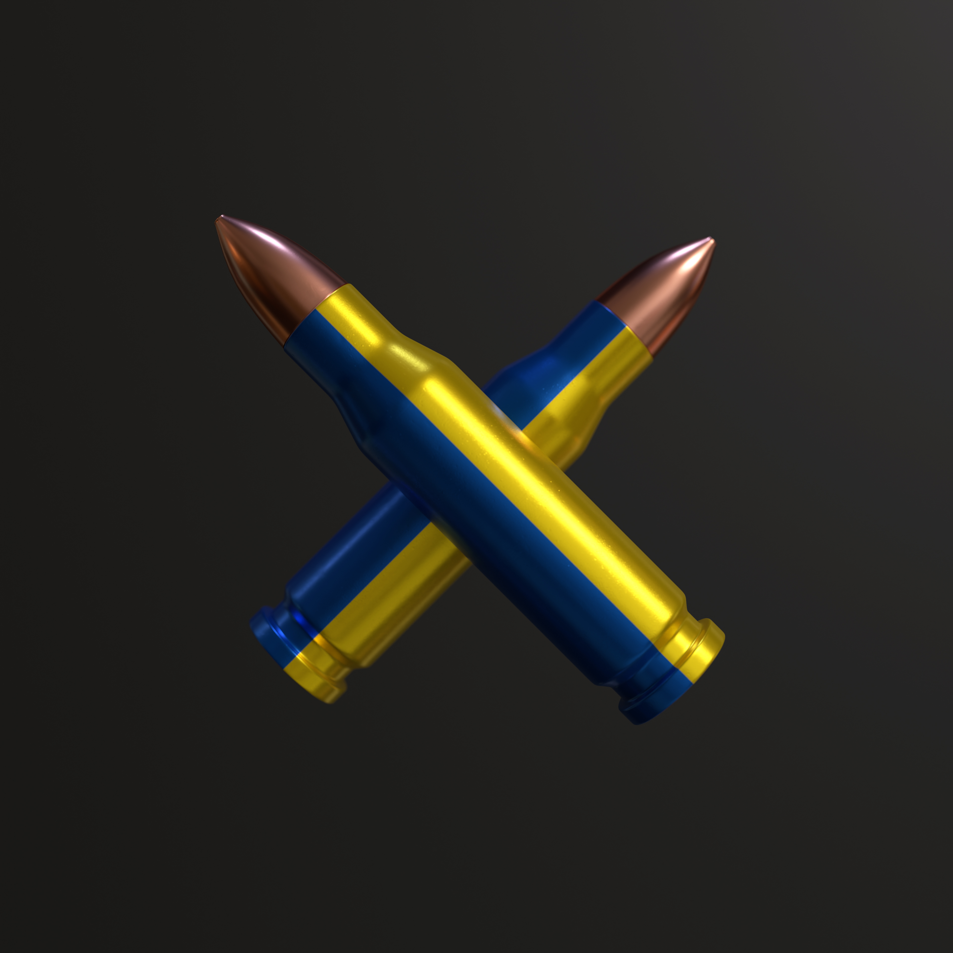 CROSSED BULLETS WITH THE FLAG OF UKRAINE