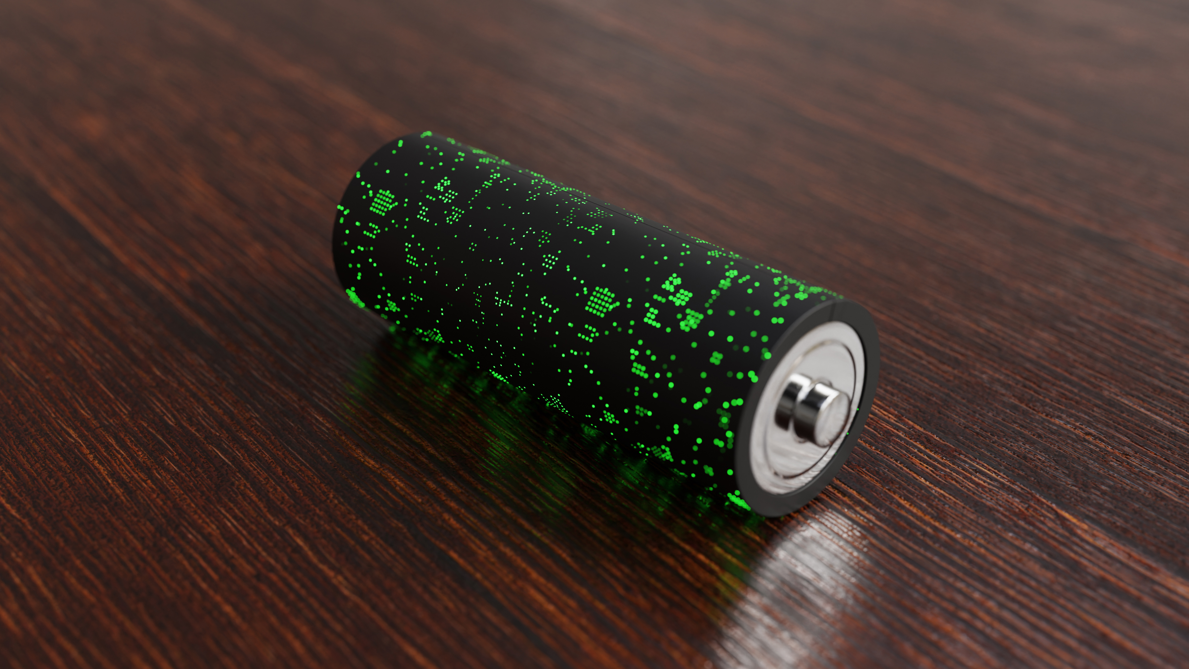 Cyber recyclable battery on wooden table