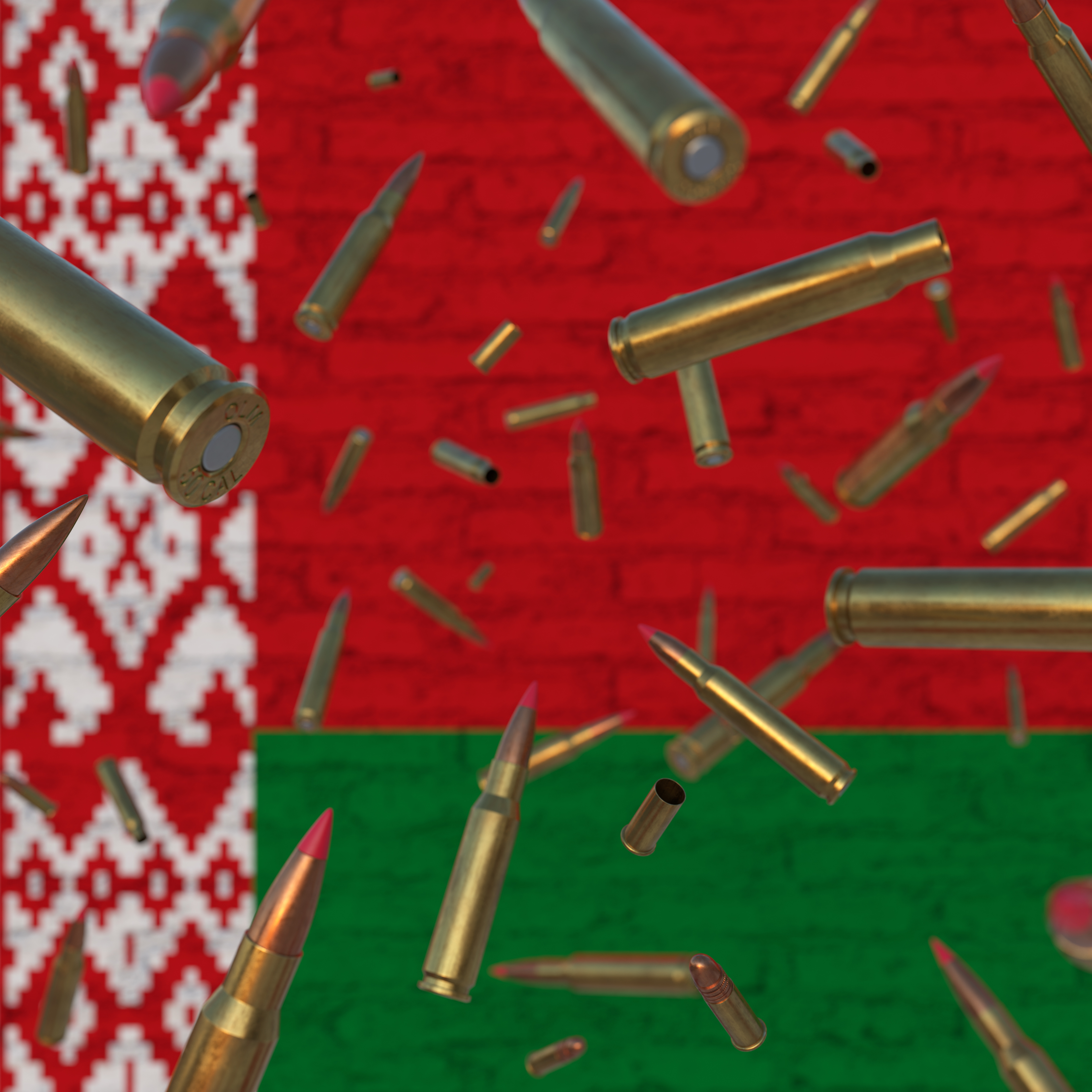 Falling Bullets in front of Bosnia and Herzegovina flag