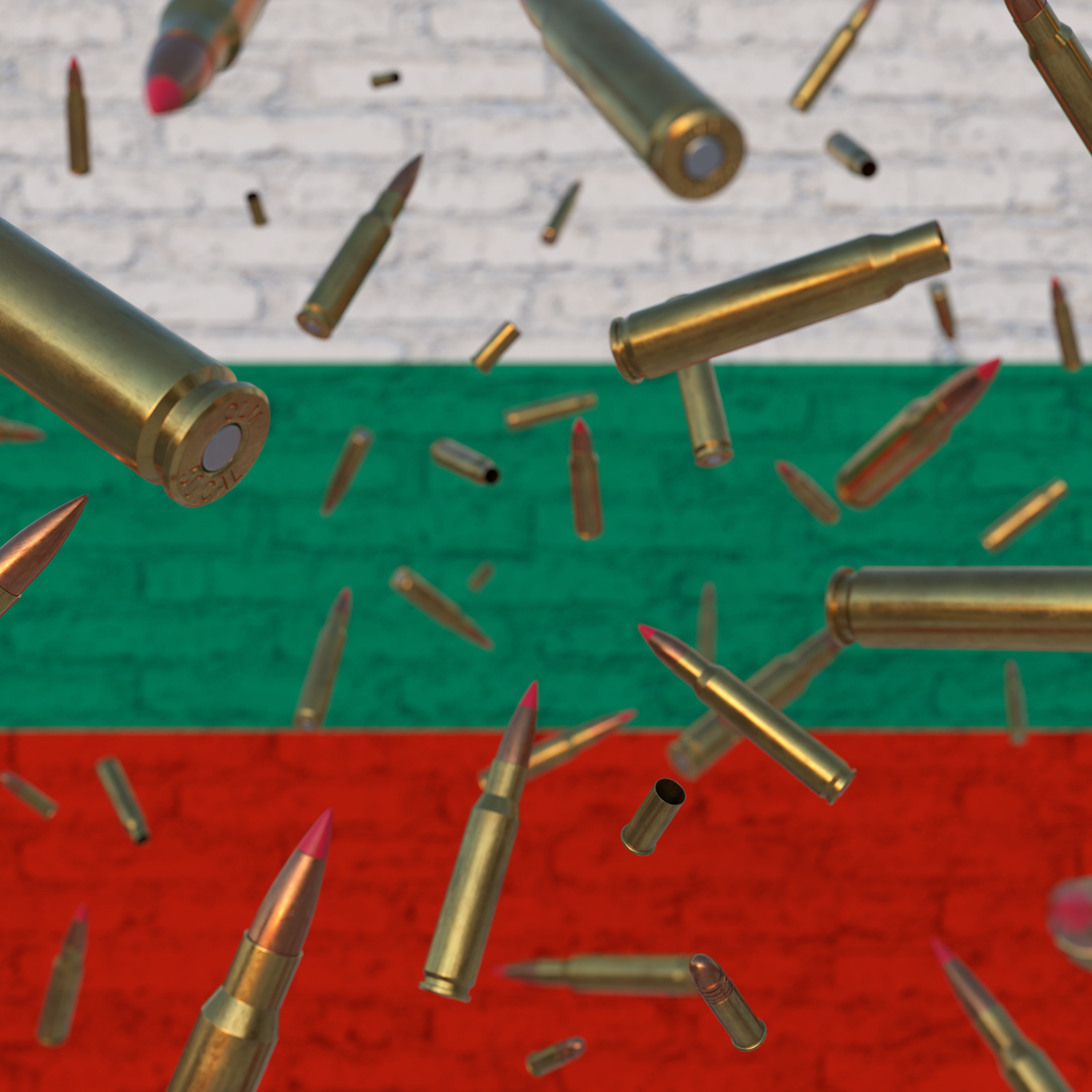Falling Bullets in front of Bulgaria flag