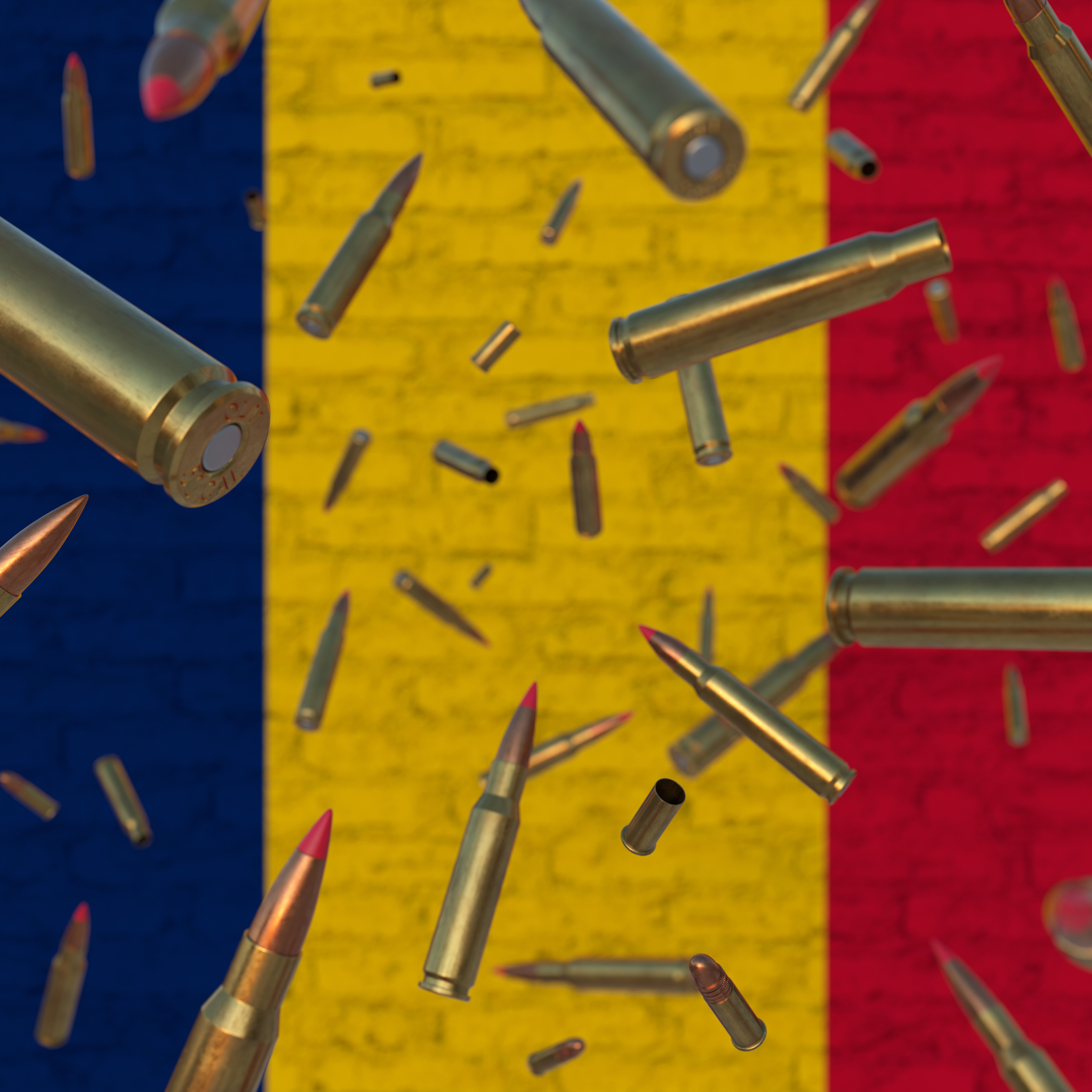 Falling Bullets in front of Chad flag