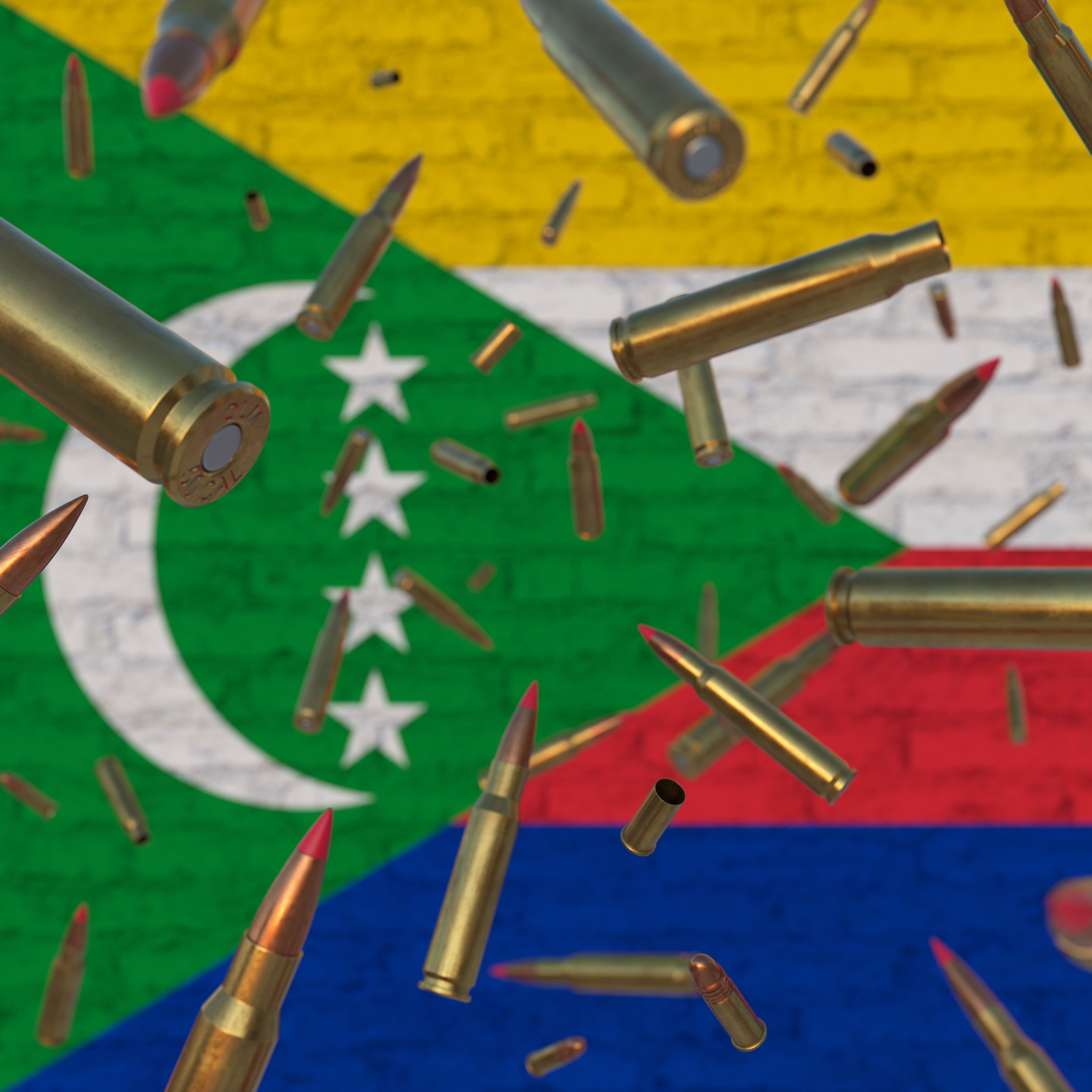 Falling Bullets in front of Bosnia and Herzegovina flag