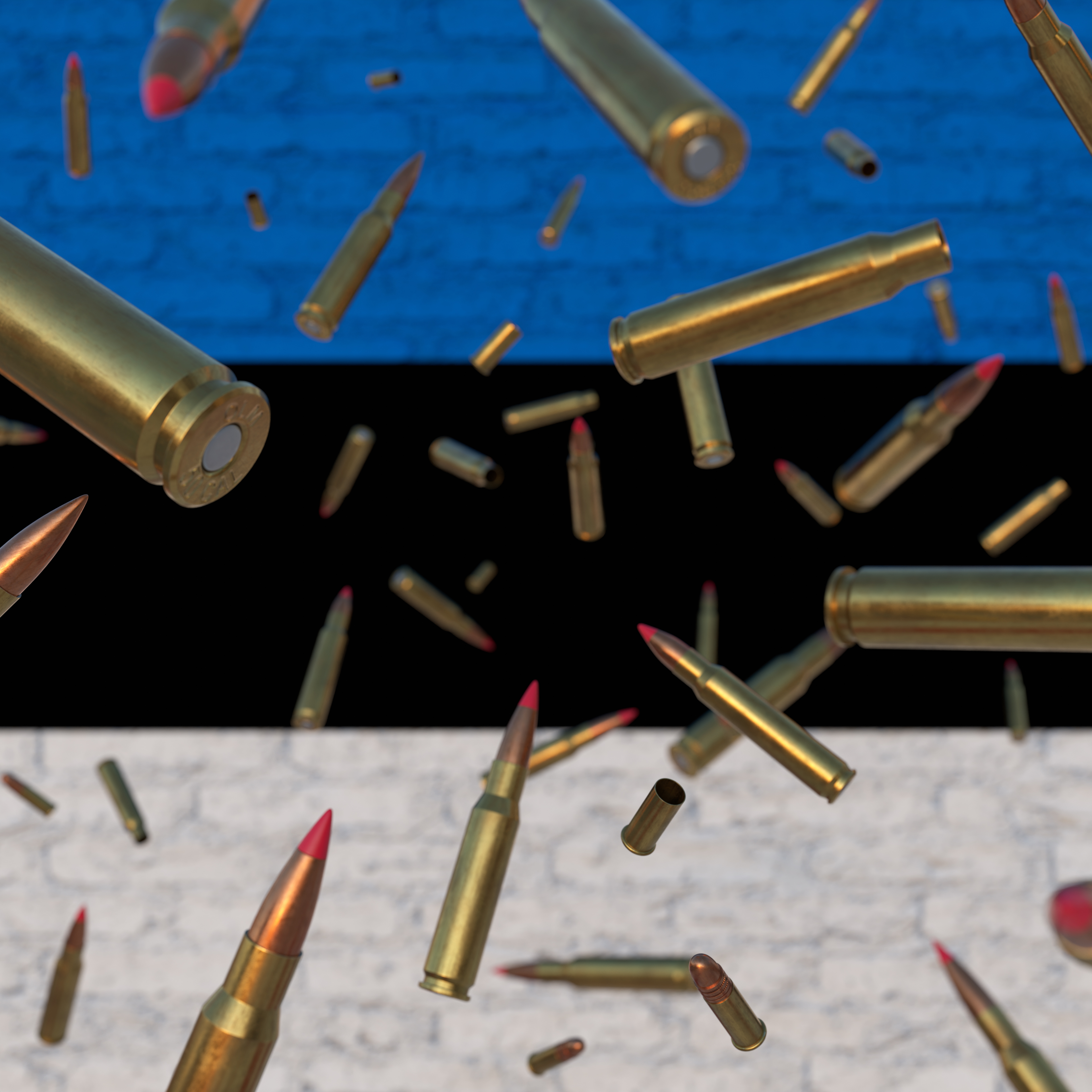 Falling Bullets in front of Bosnia and Herzegovina flag
