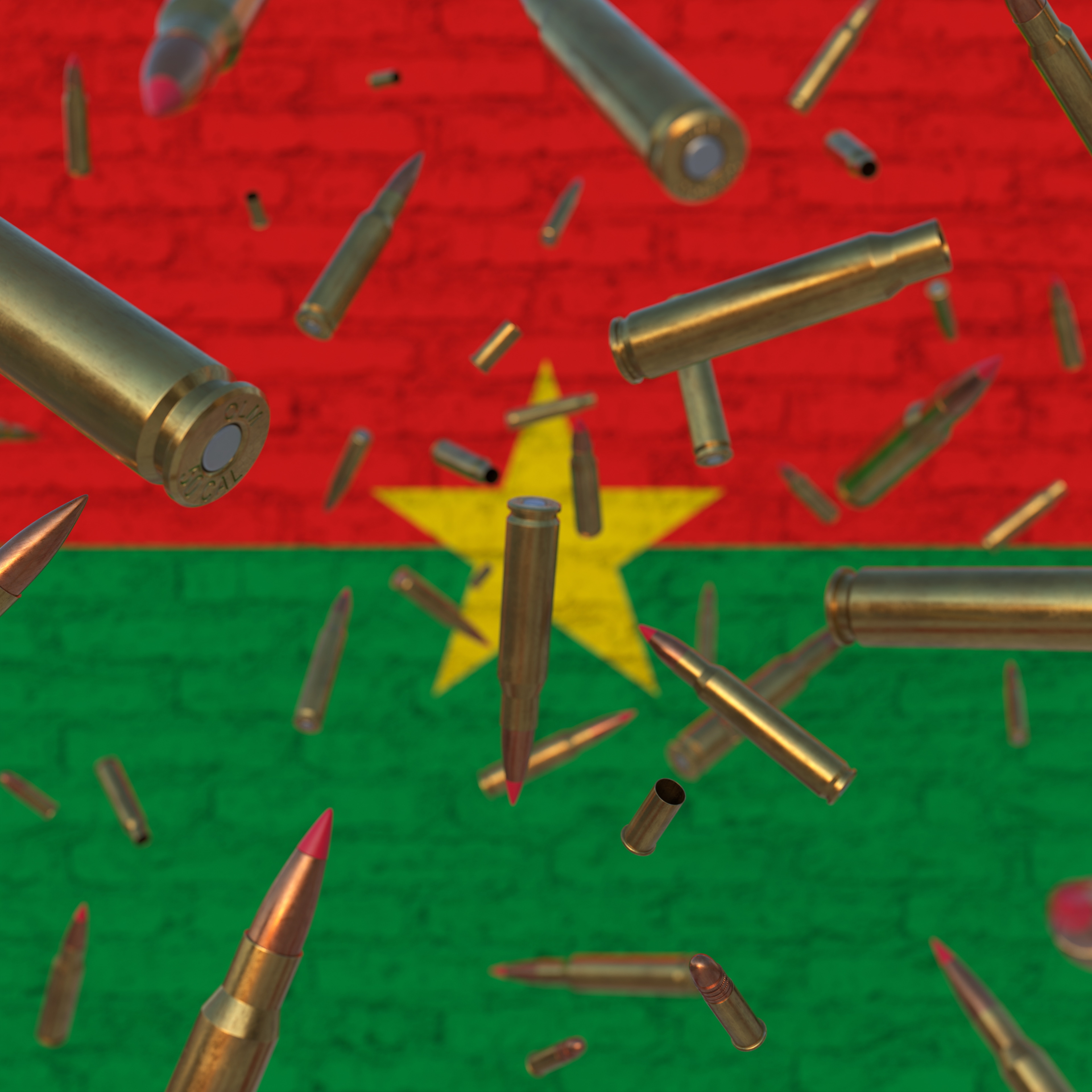Falling Bullets in front of Bosnia and Herzegovina flag