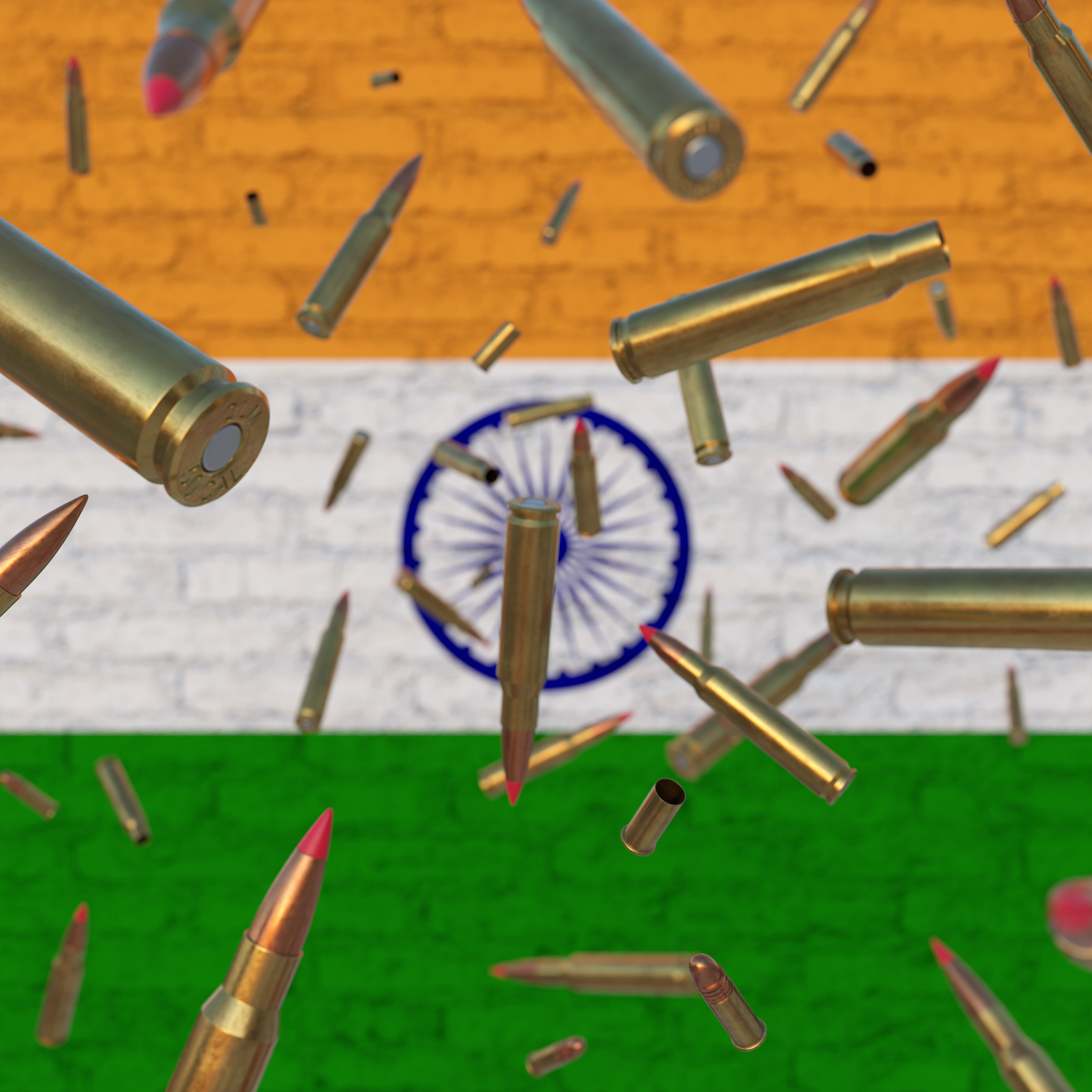 Falling Bullets in front of Bosnia and Herzegovina flag
