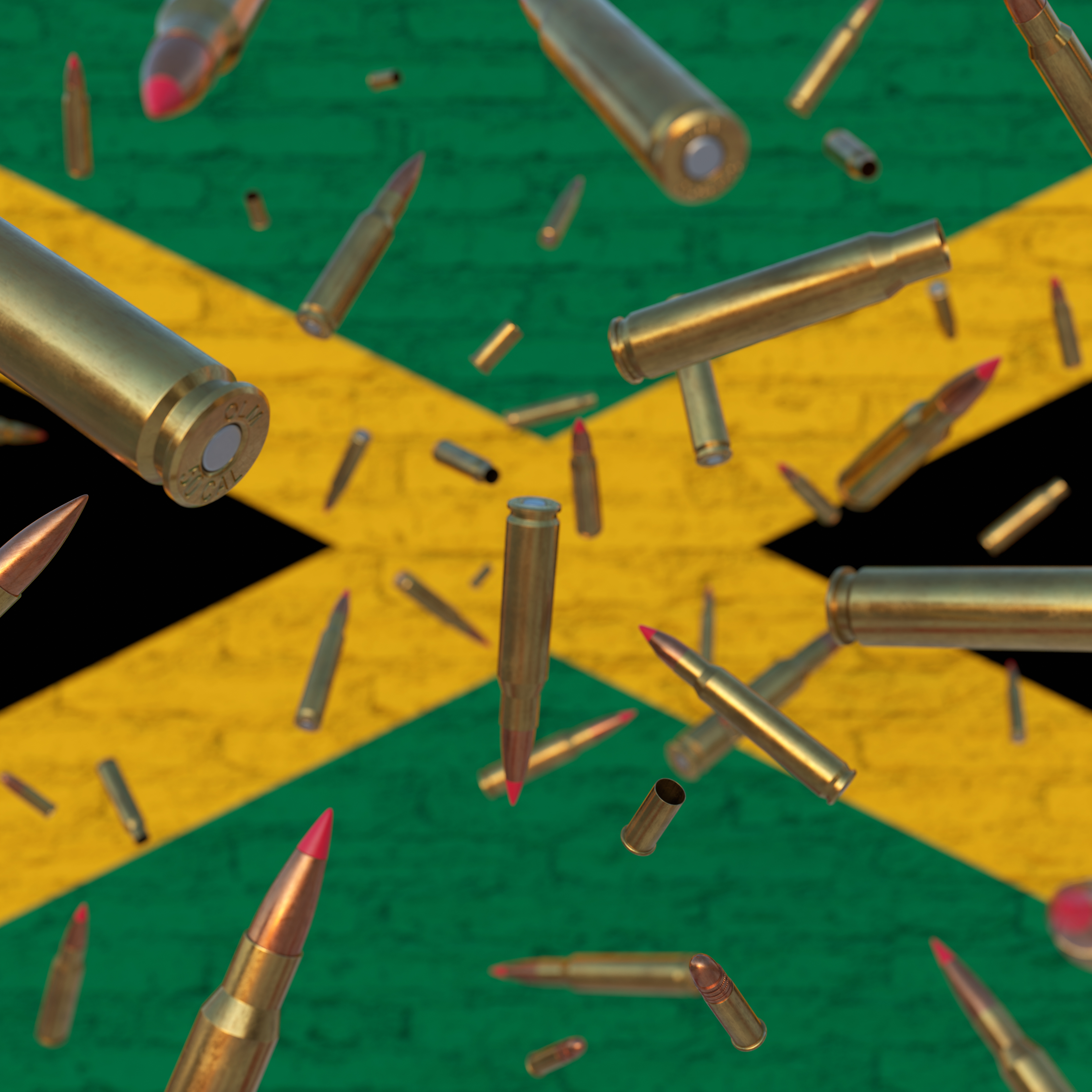 Falling Bullets in front of Bosnia and Herzegovina flag