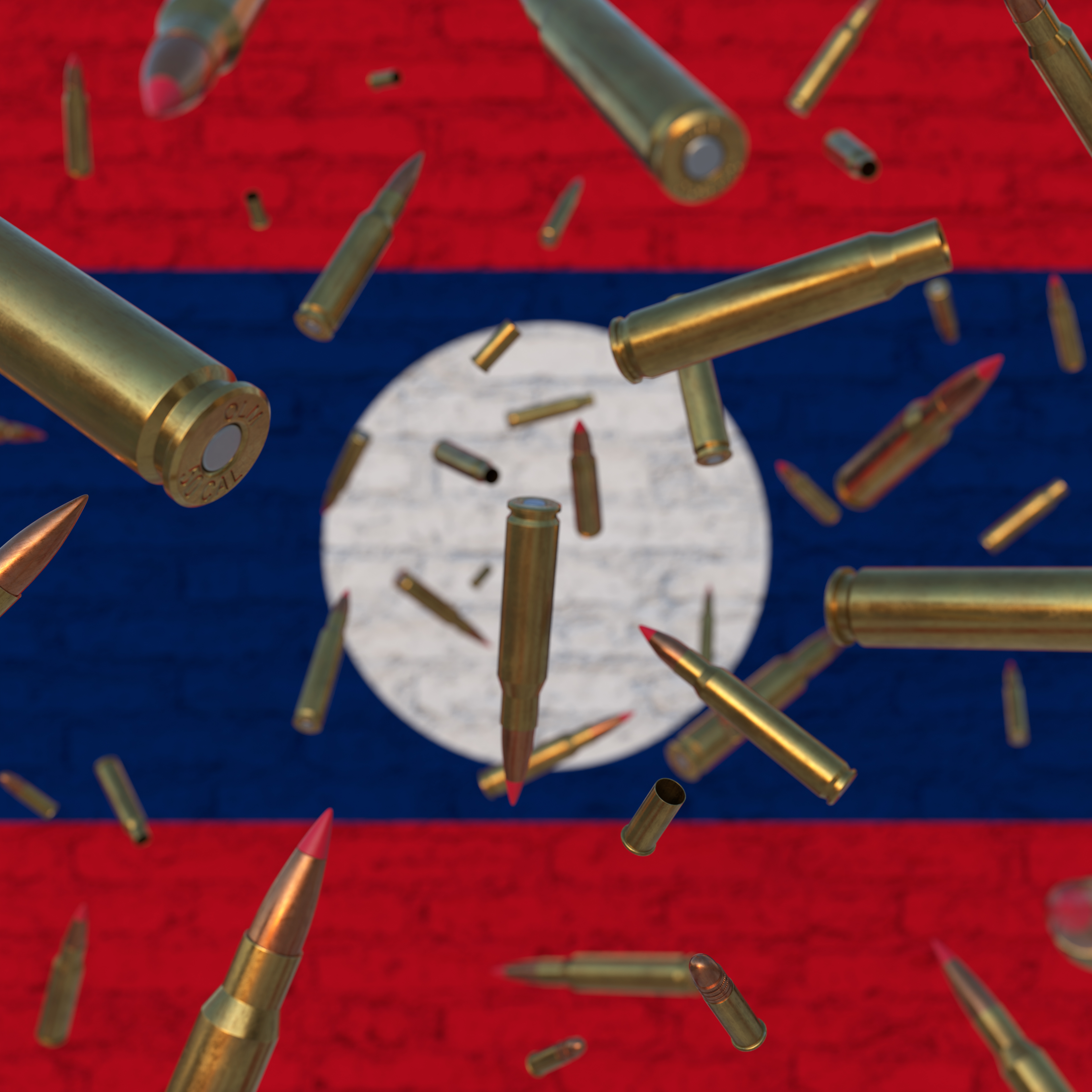 Falling Bullets in front of Laos flag