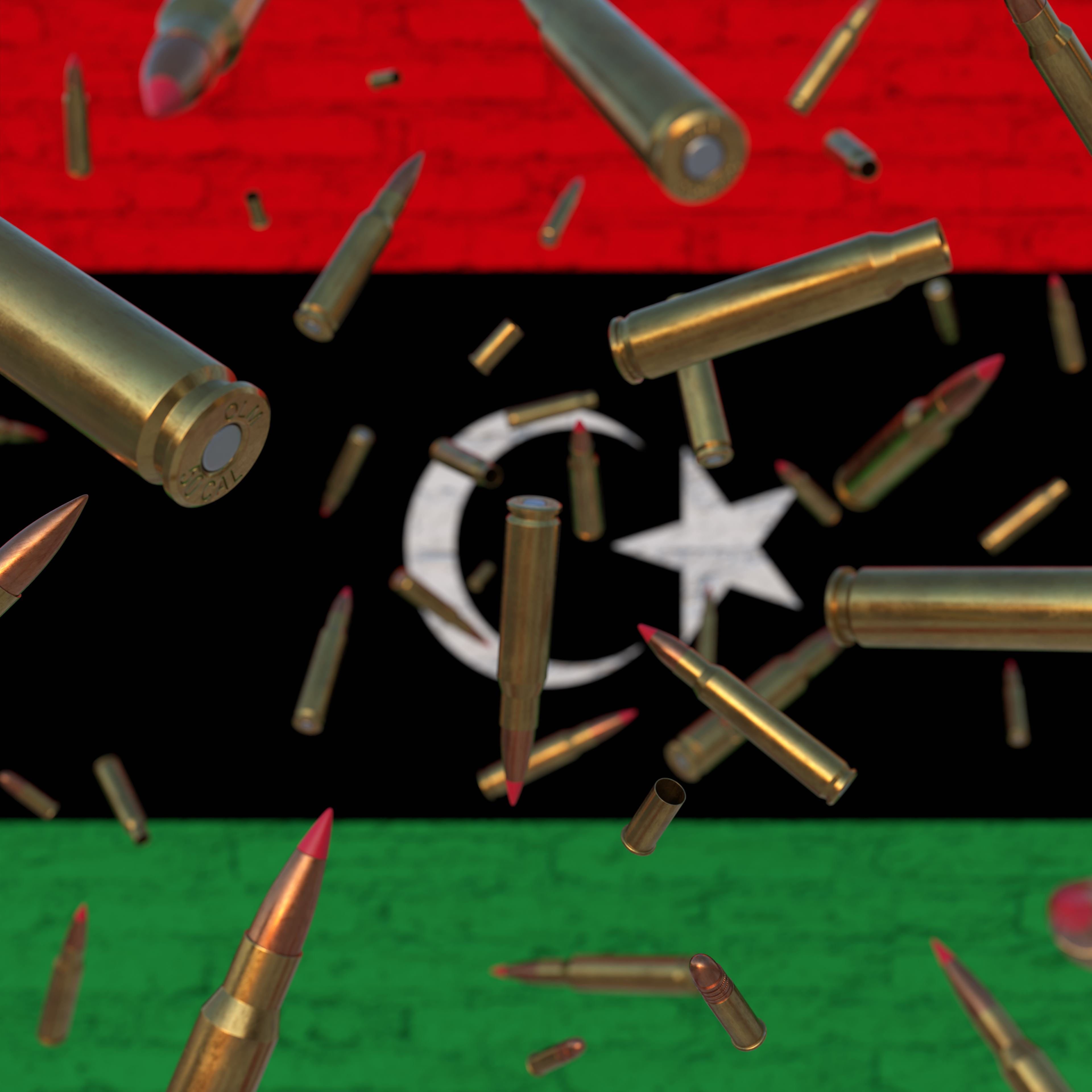 Falling Bullets in front of Libya flag