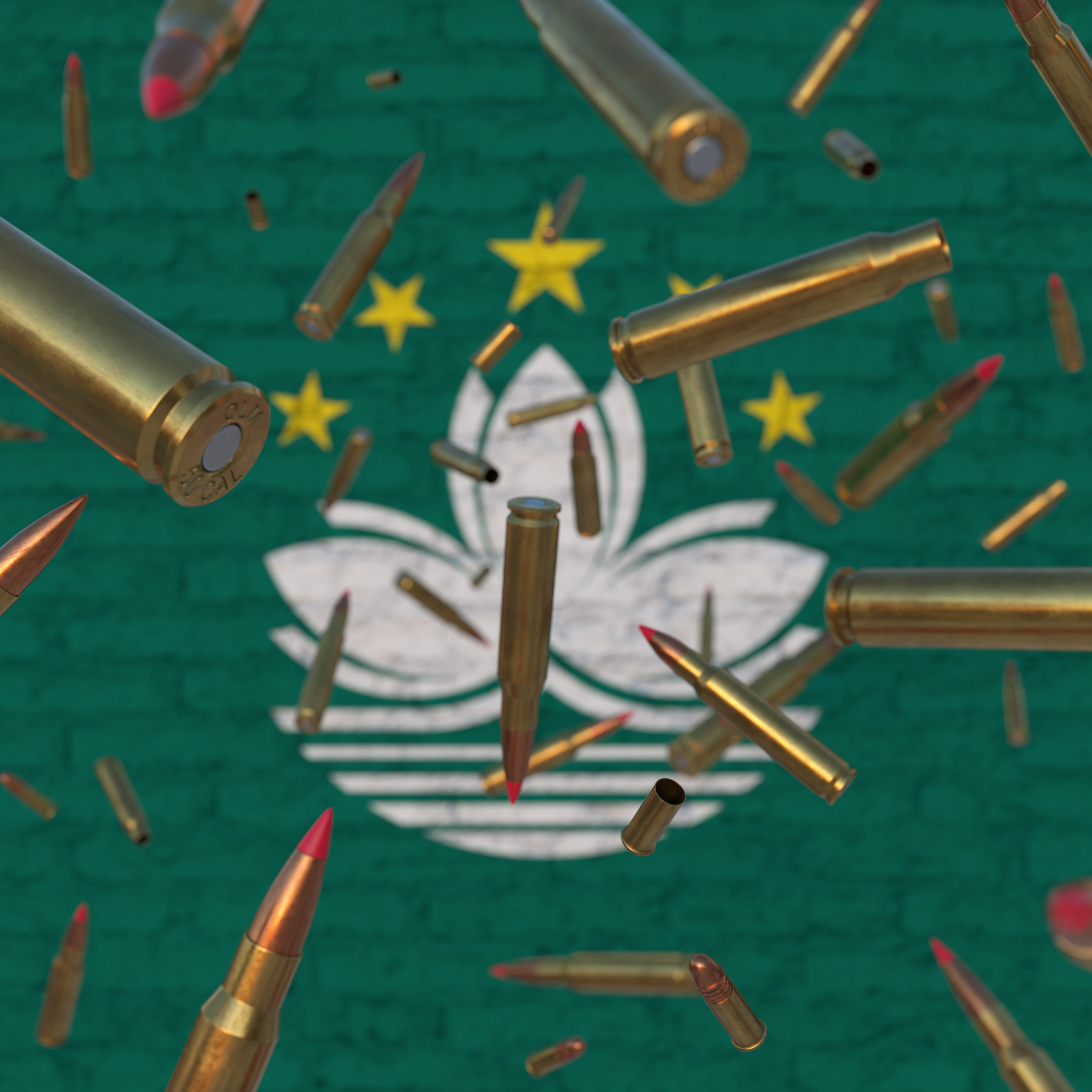 Falling Bullets in front of Bosnia and Herzegovina flag