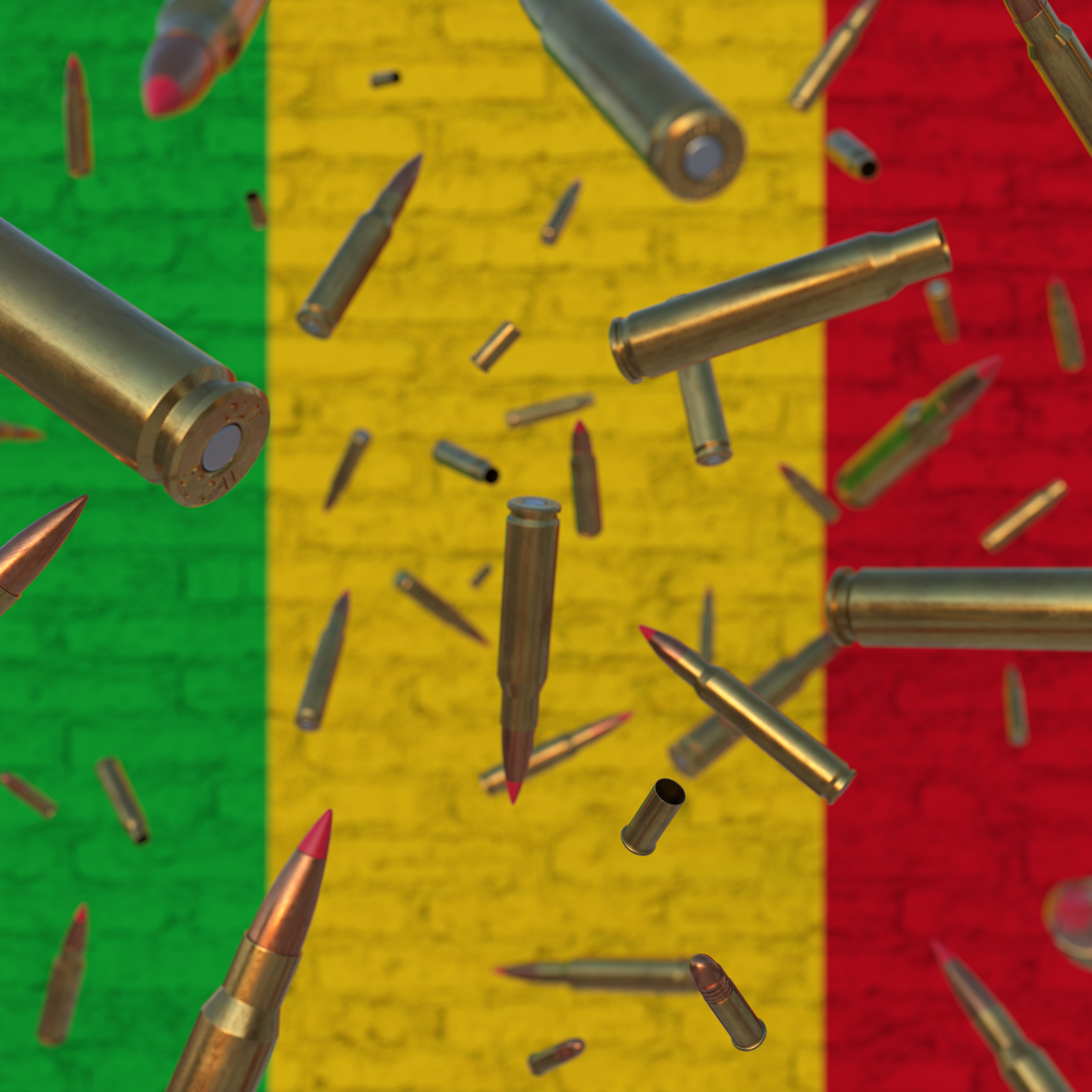 Falling Bullets in front of Bosnia and Herzegovina flag