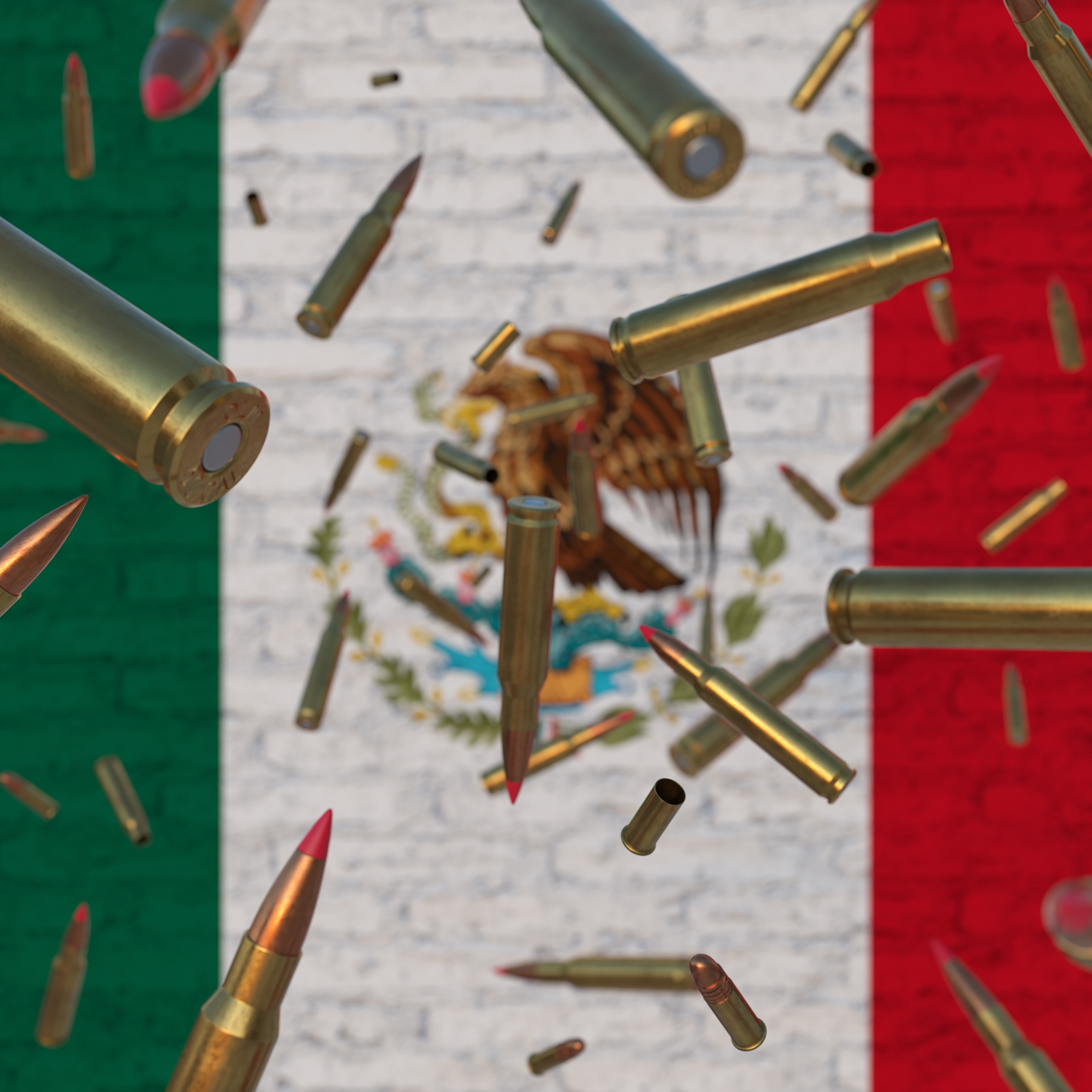 Falling Bullets in front of Bosnia and Herzegovina flag