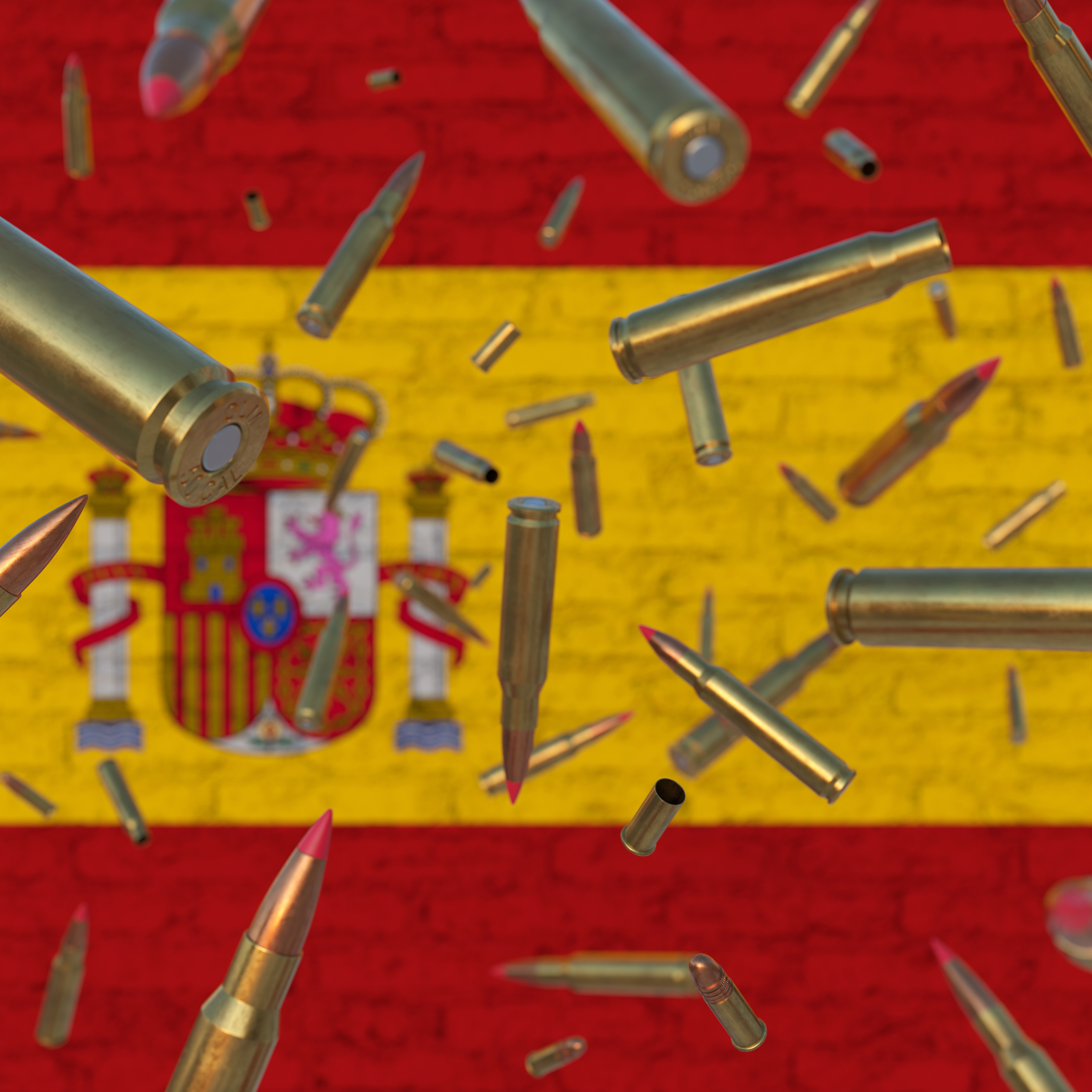 Falling Bullets in front of Bosnia and Herzegovina flag