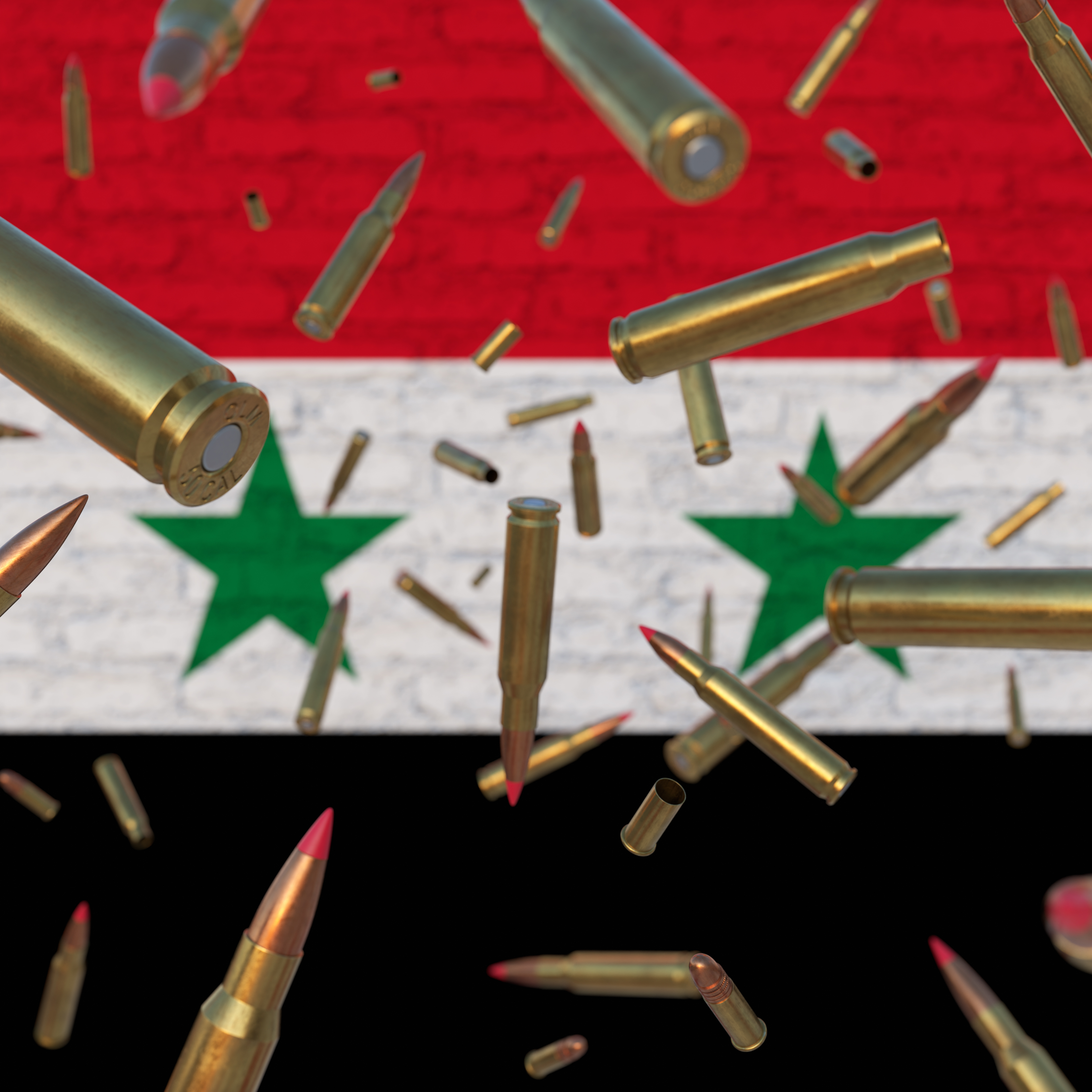 Falling Bullets in front of Bosnia and Herzegovina flag