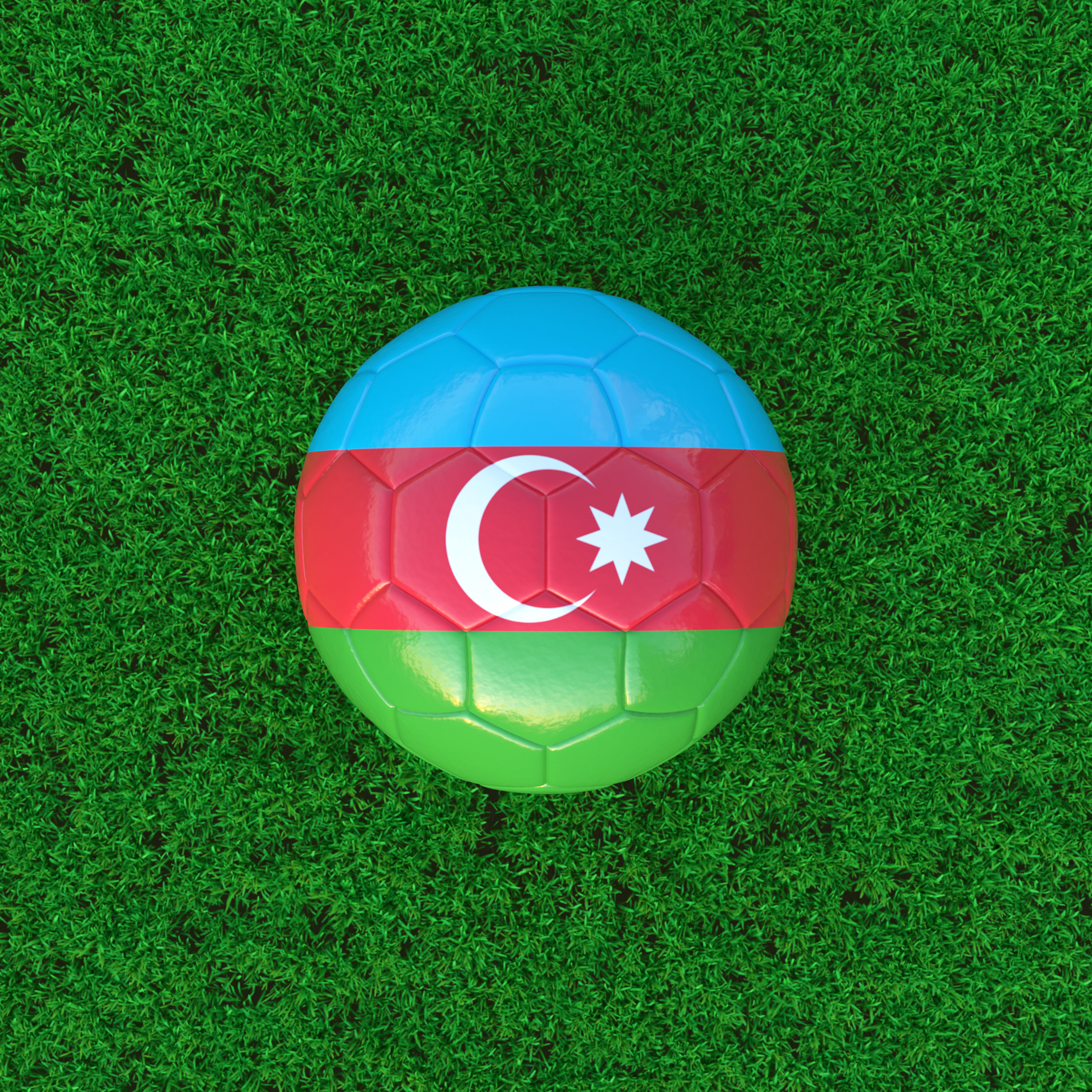 Flag Of Azerbaijan On Soccer Ball With Grass Background