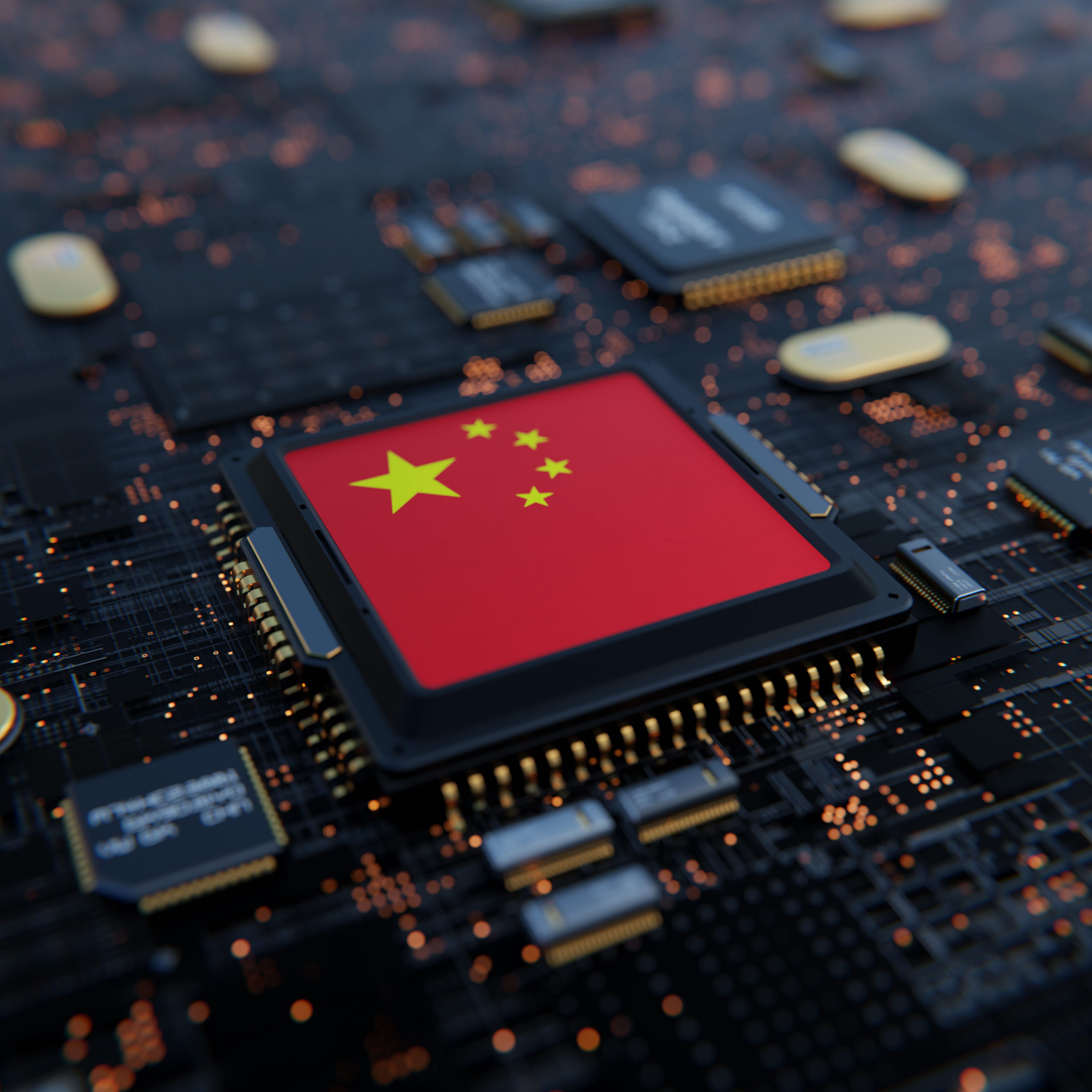 Flag of Kyrgyzstan on a processor, CPU or Chip