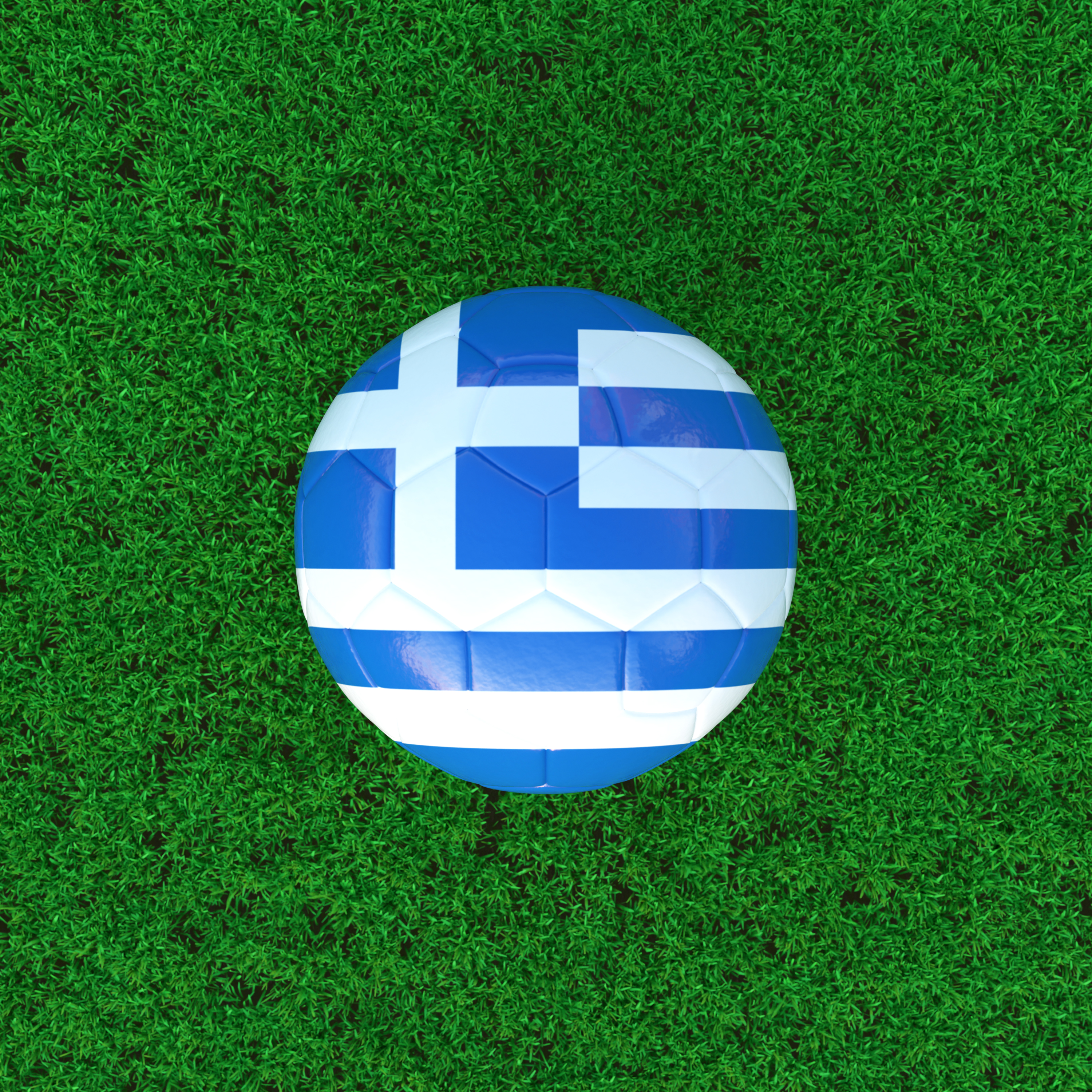 Flag Of Azerbaijan On Soccer Ball With Grass Background