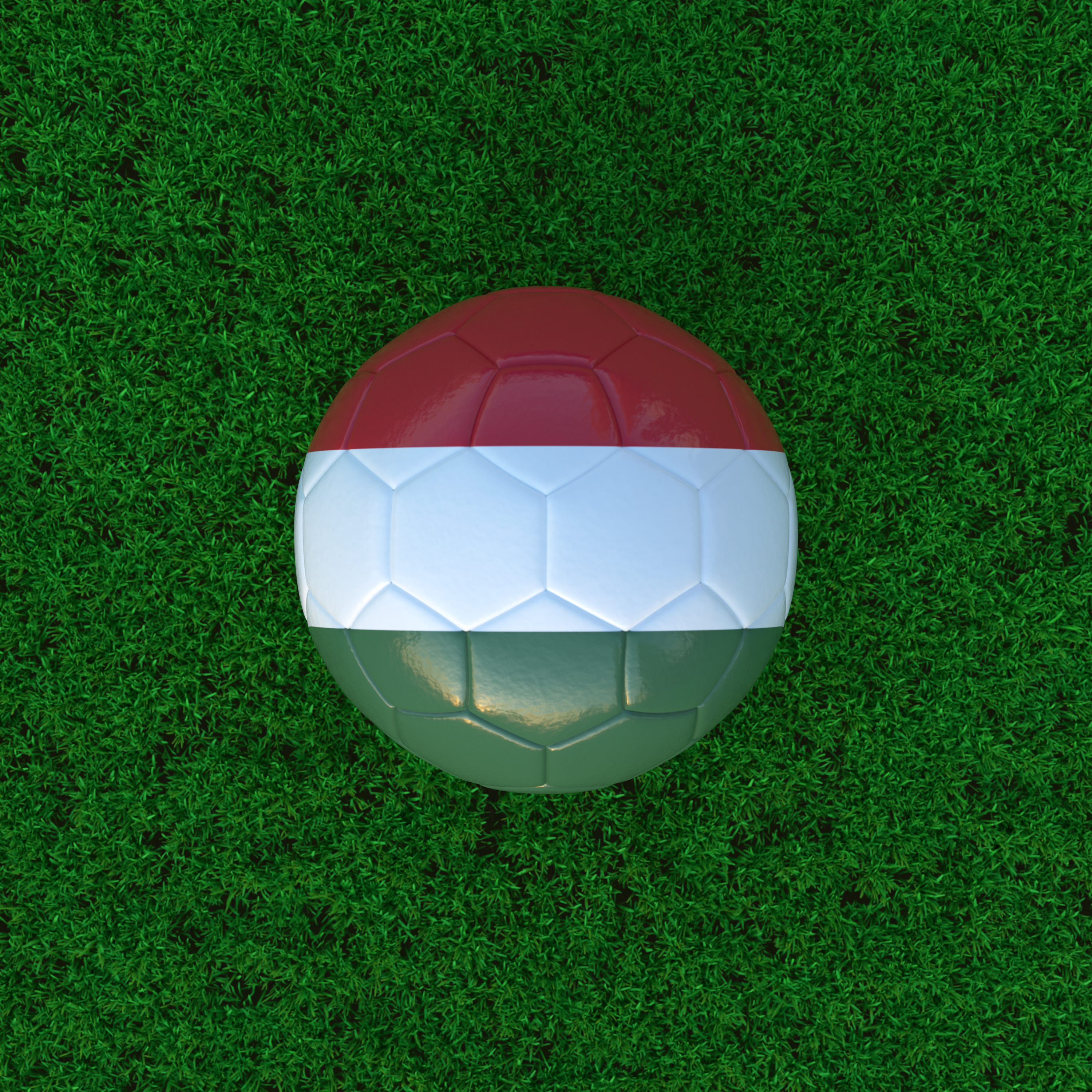 Flag of Hungary on a Soccer Ball with a Grass Background