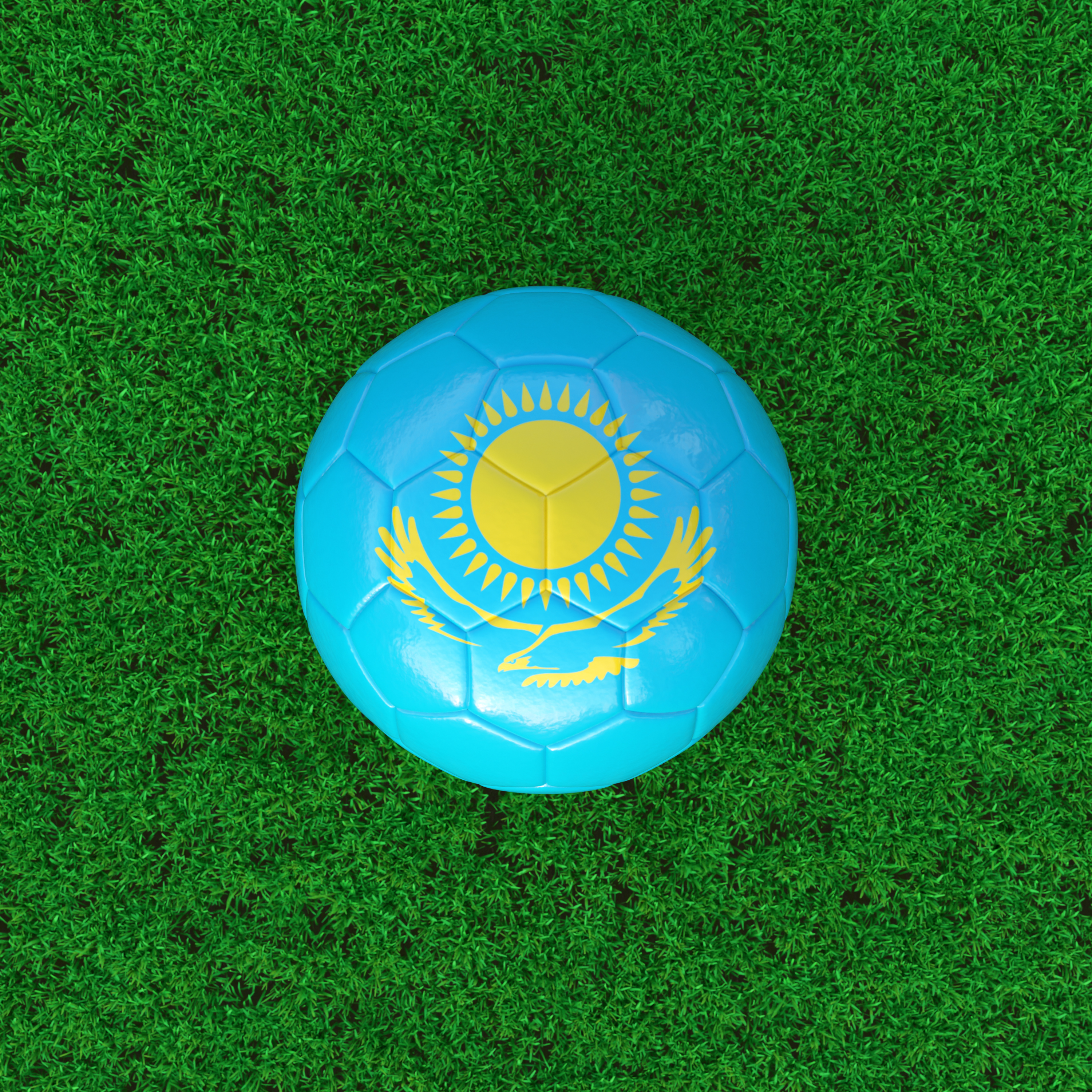Flag Of Kazakhstan On Soccer Ball With Grass Background