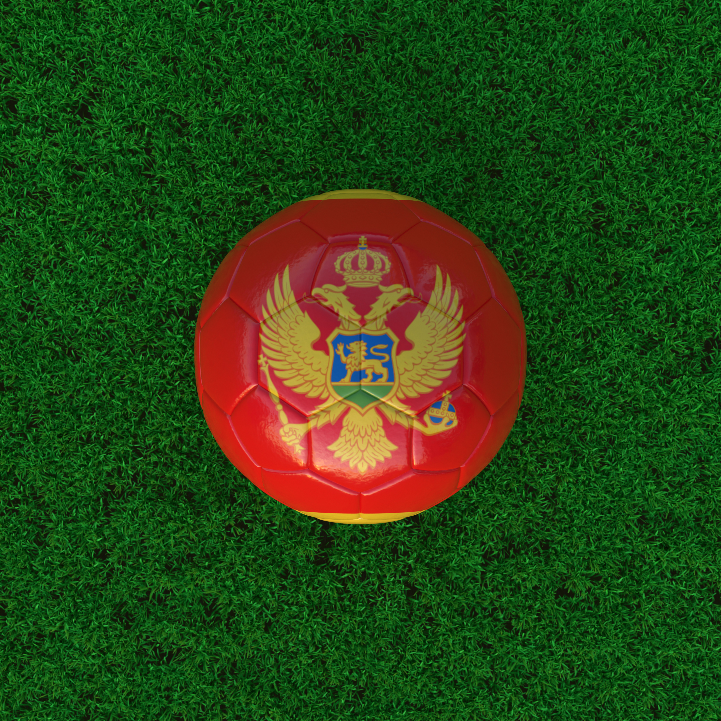 Flag of Montenegro on a Soccer Ball with a Grass Background