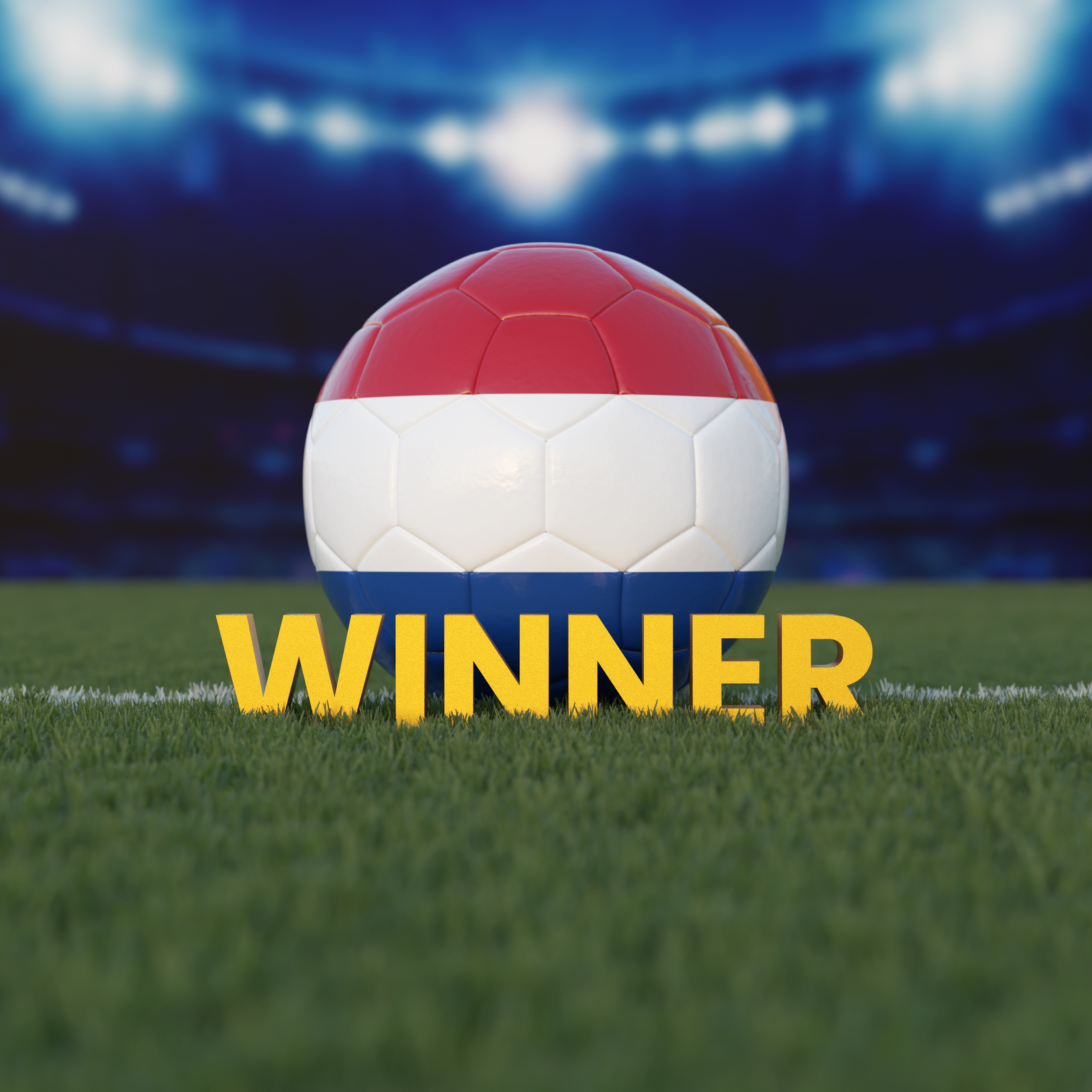 Flag of Netherlands On Soccer Ball With WINNER Text