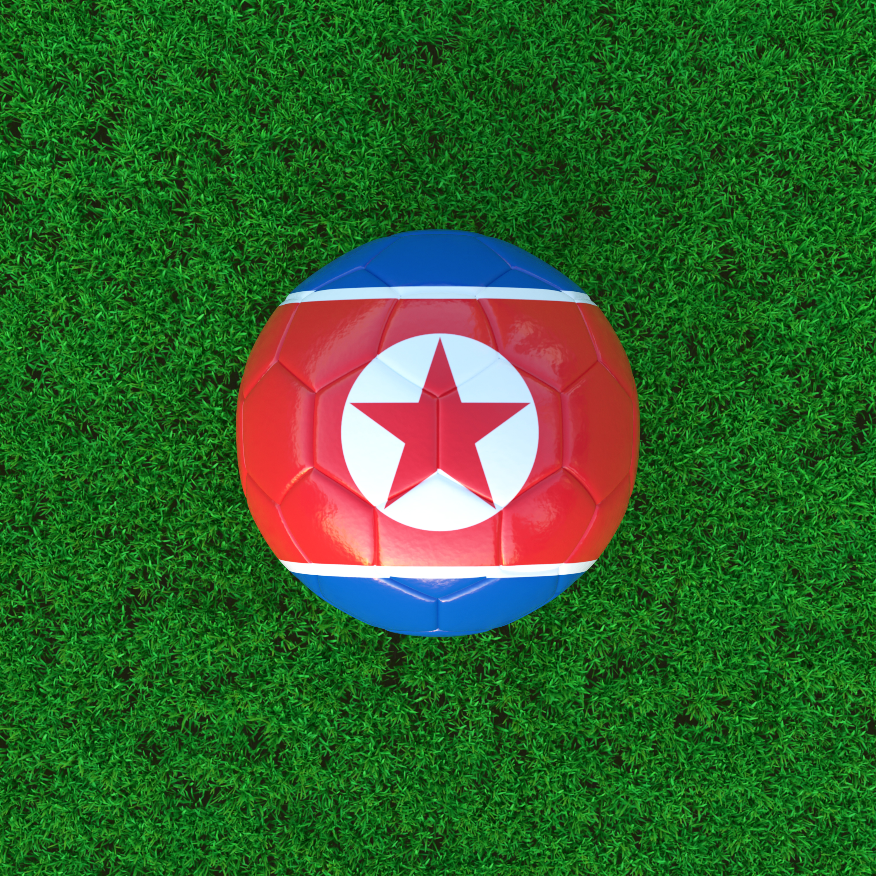 Flag Of North Korea On Soccer Ball With Grass Background