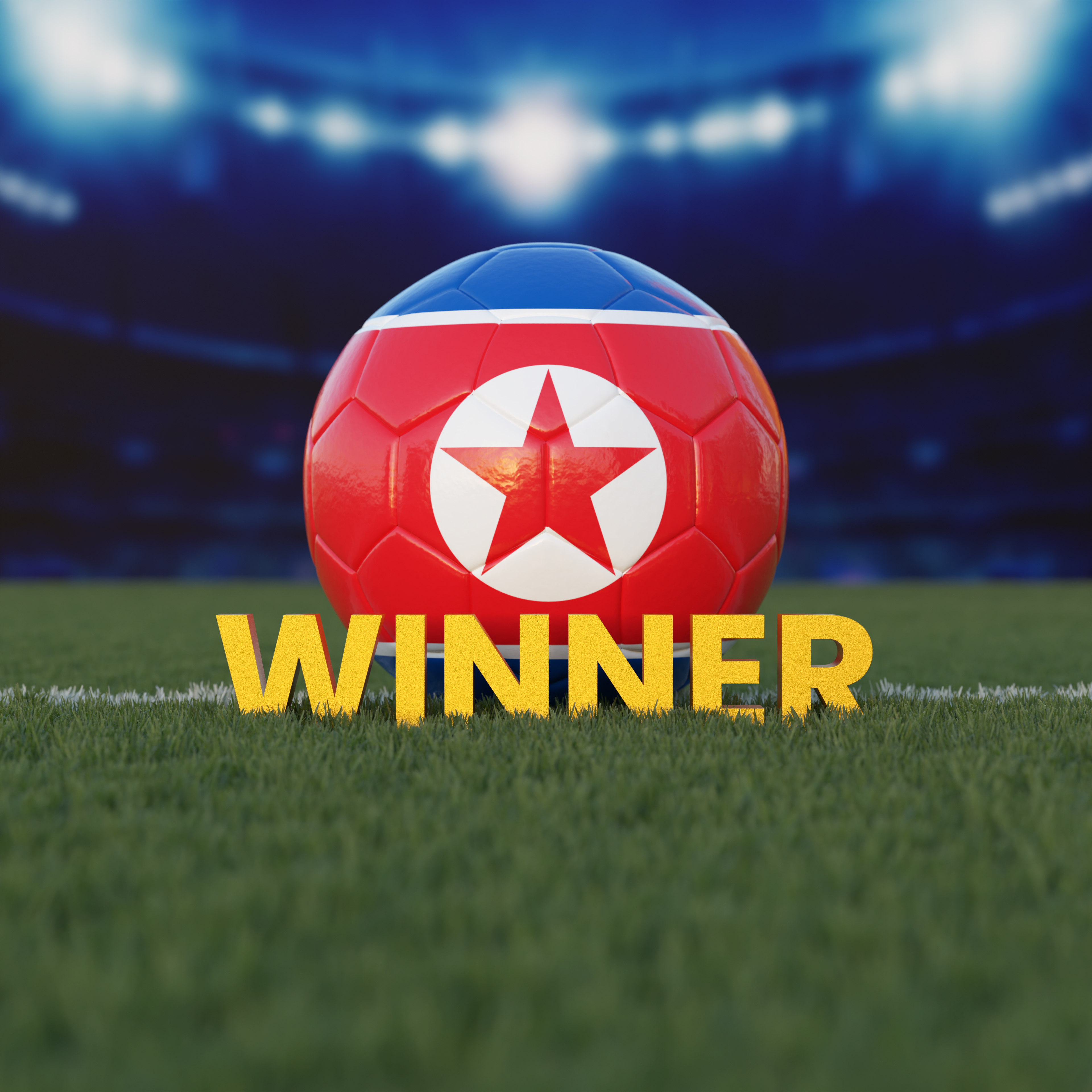 Flag of North Korea On Soccer Ball With WINNER Text