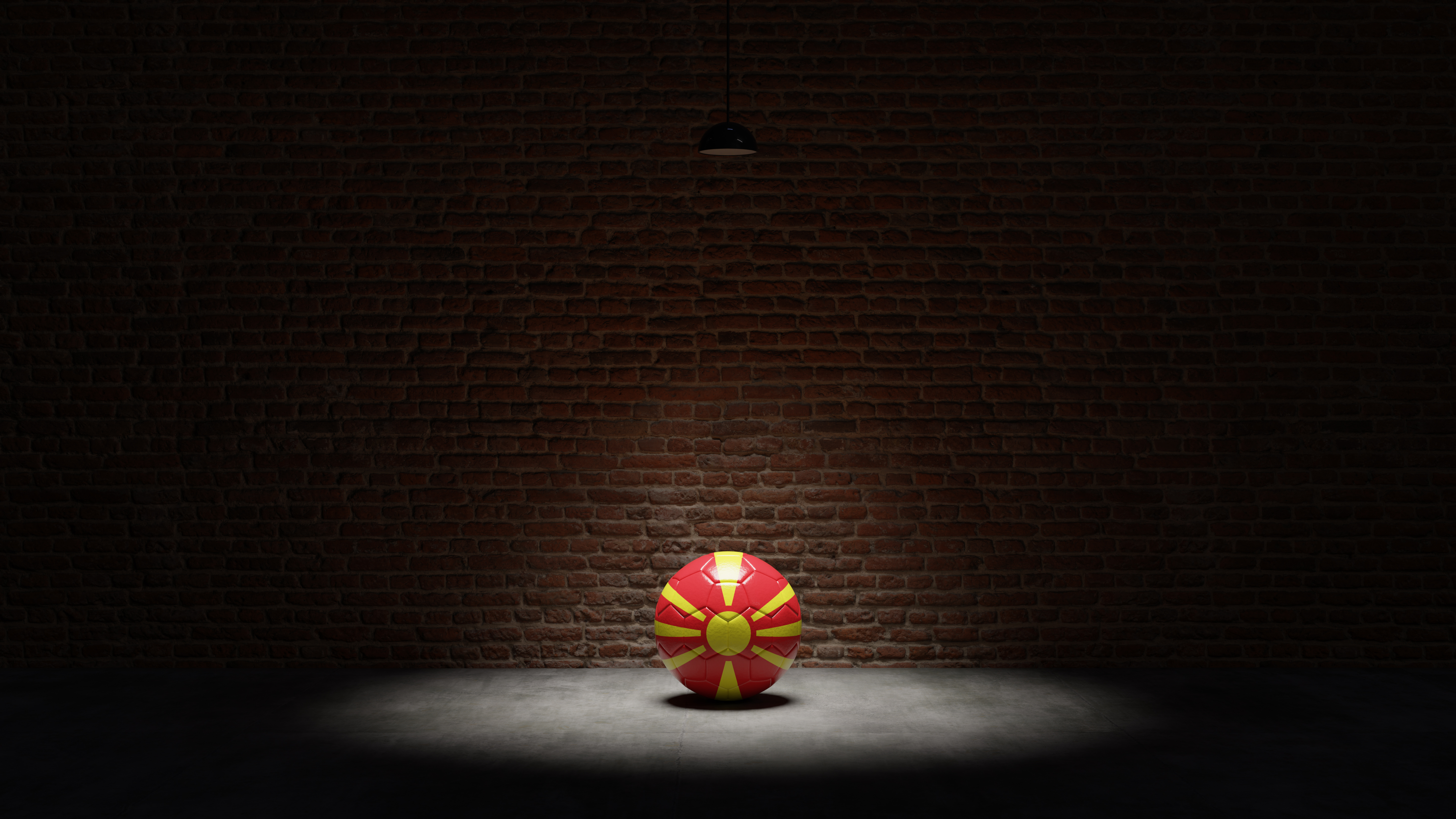 Flag of North Macedonia on Soccer Ball Under Spotlight