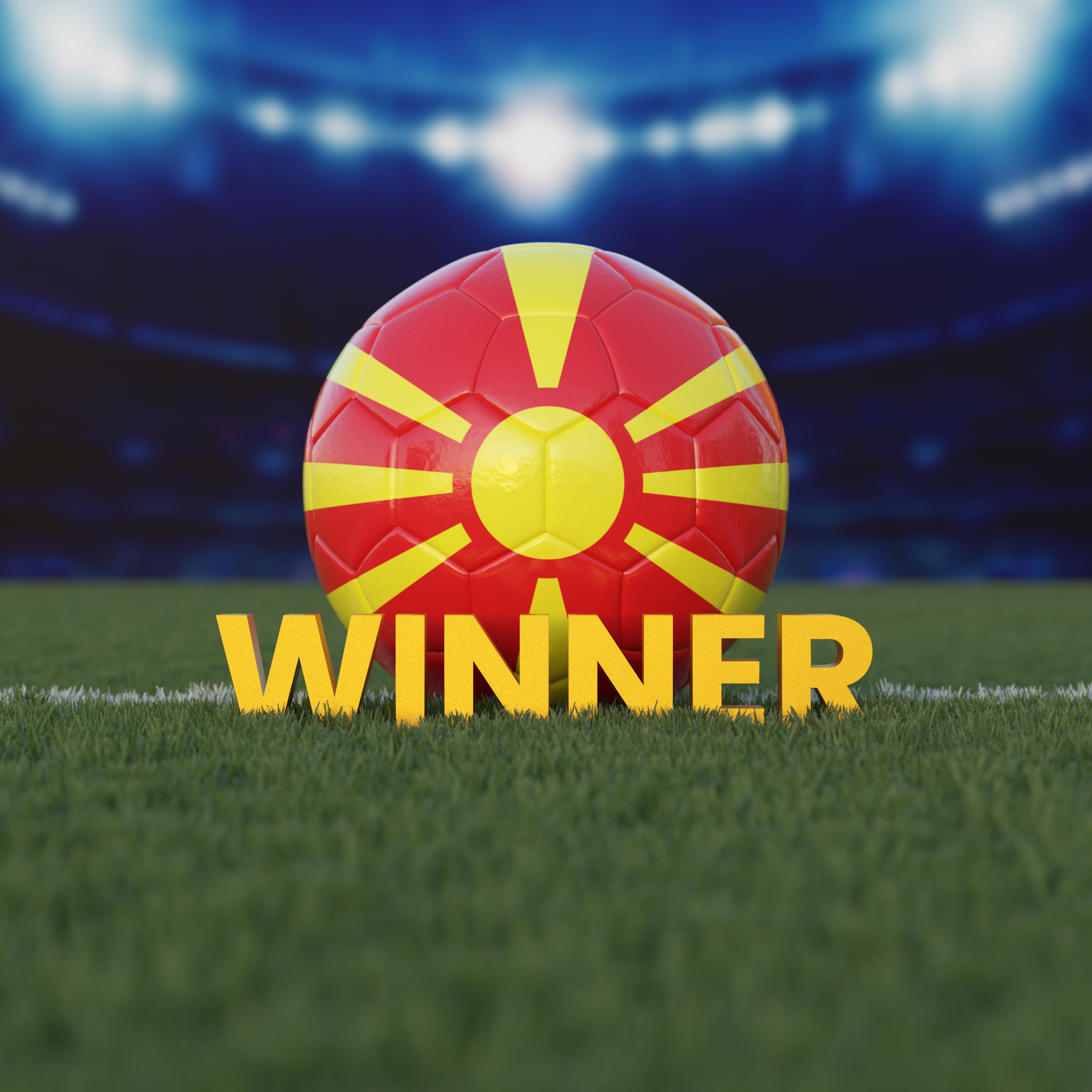 Flag of North Macedonia On Soccer Ball With WINNER Text