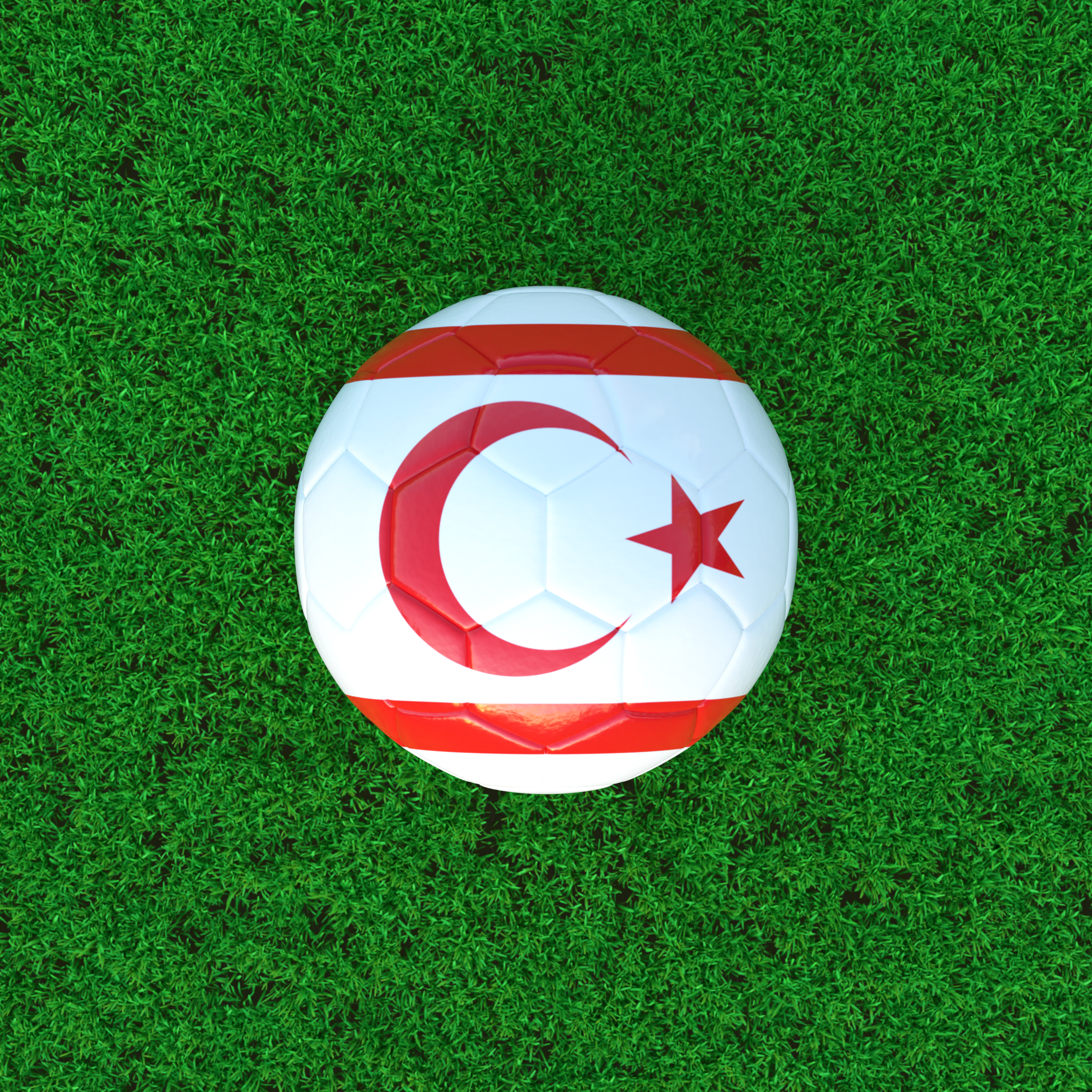 Flag Of Northern Cyprus On Soccer Ball With Grass Background