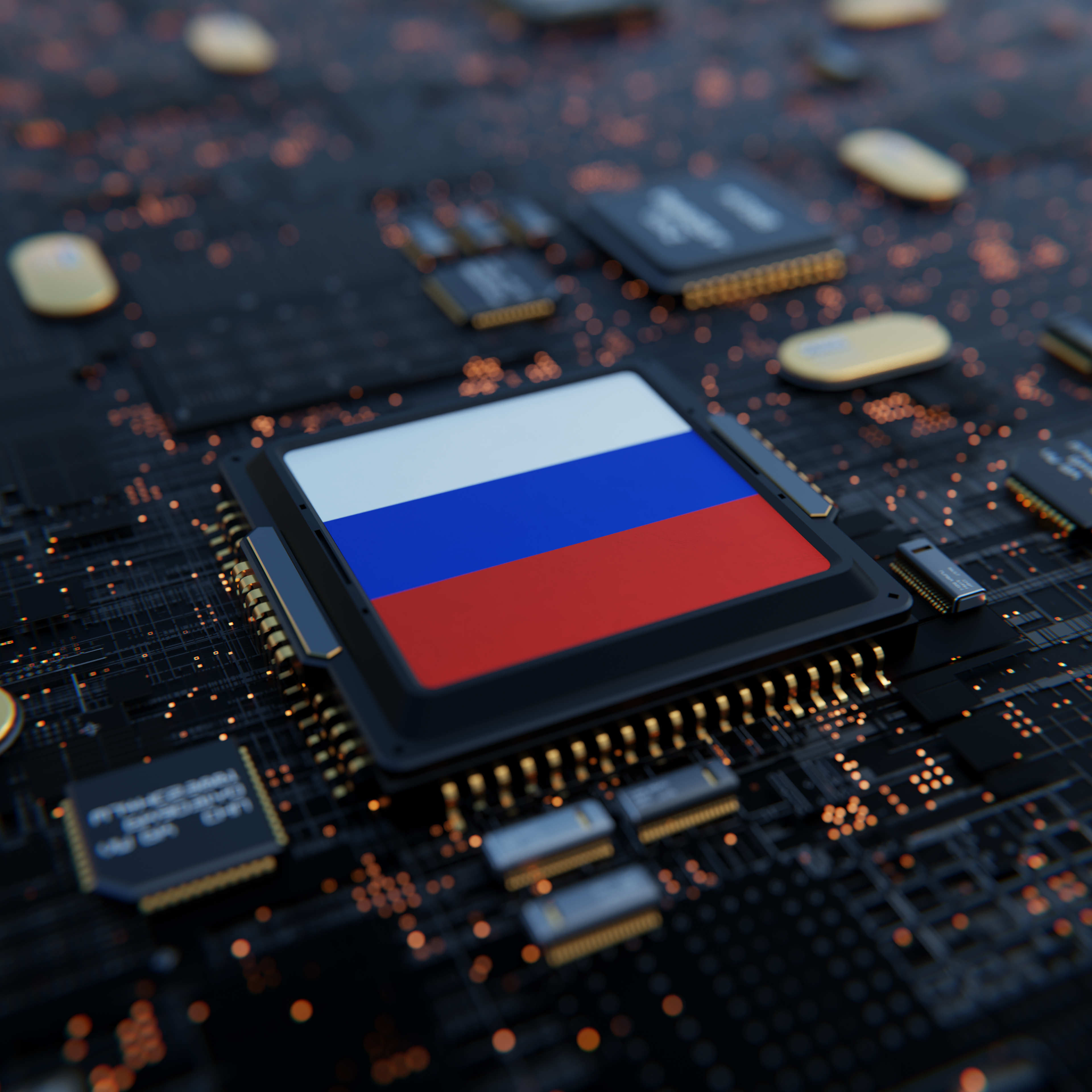 Flag of Russia on a processor, CPU or Chip