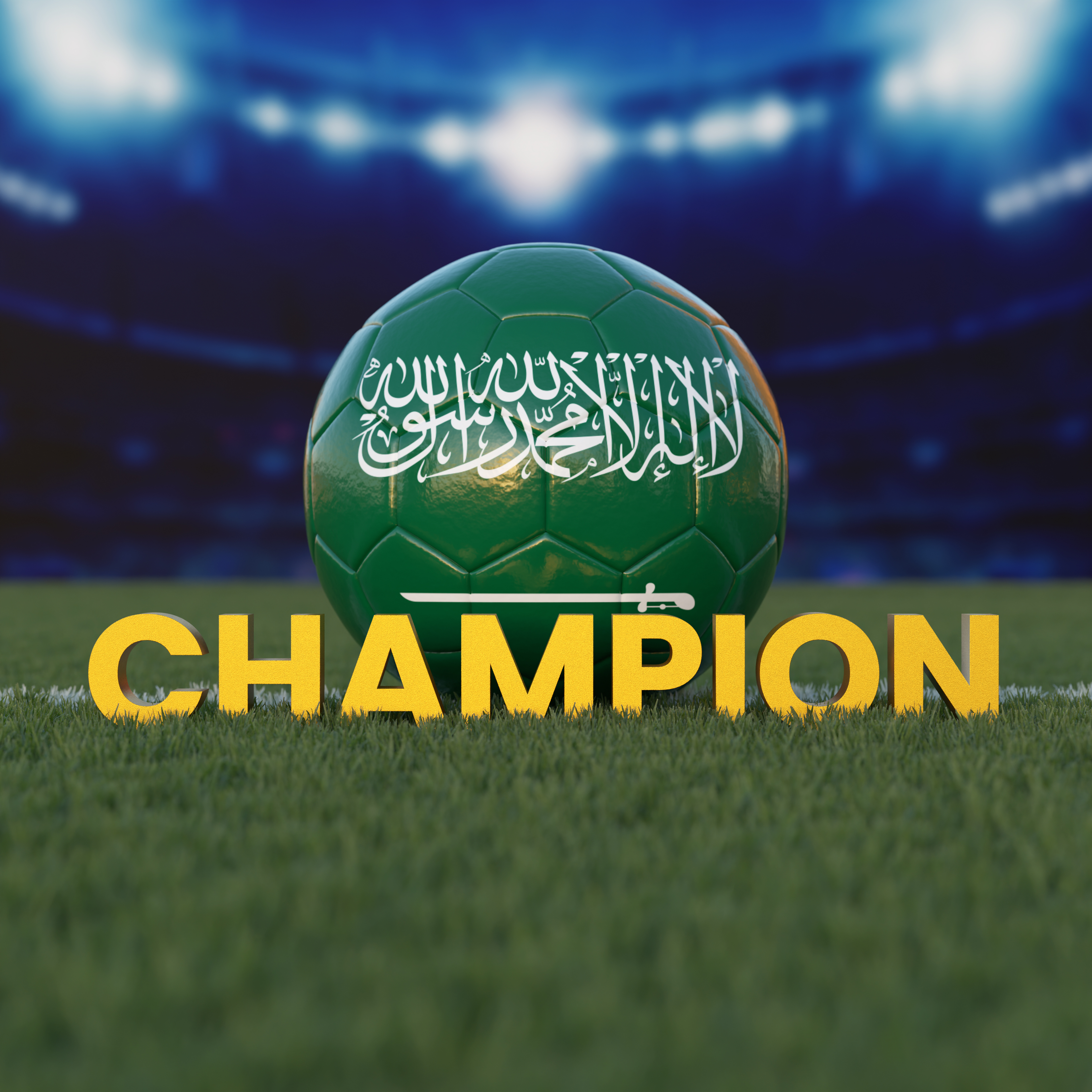 Flag of Saudi Arabia On Soccer Ball With CHAMPION Text