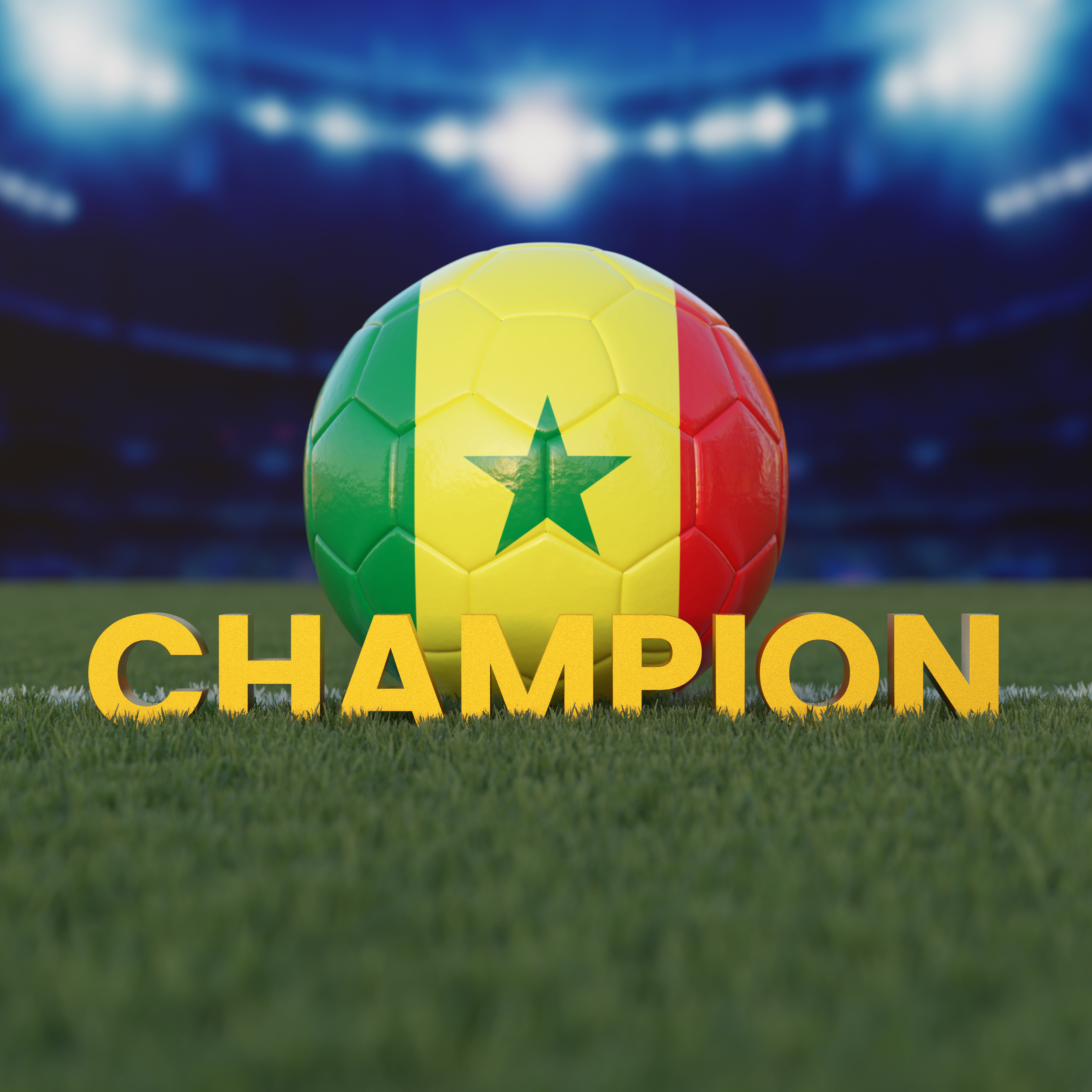 Flag of Senegal On Soccer Ball With CHAMPION Text