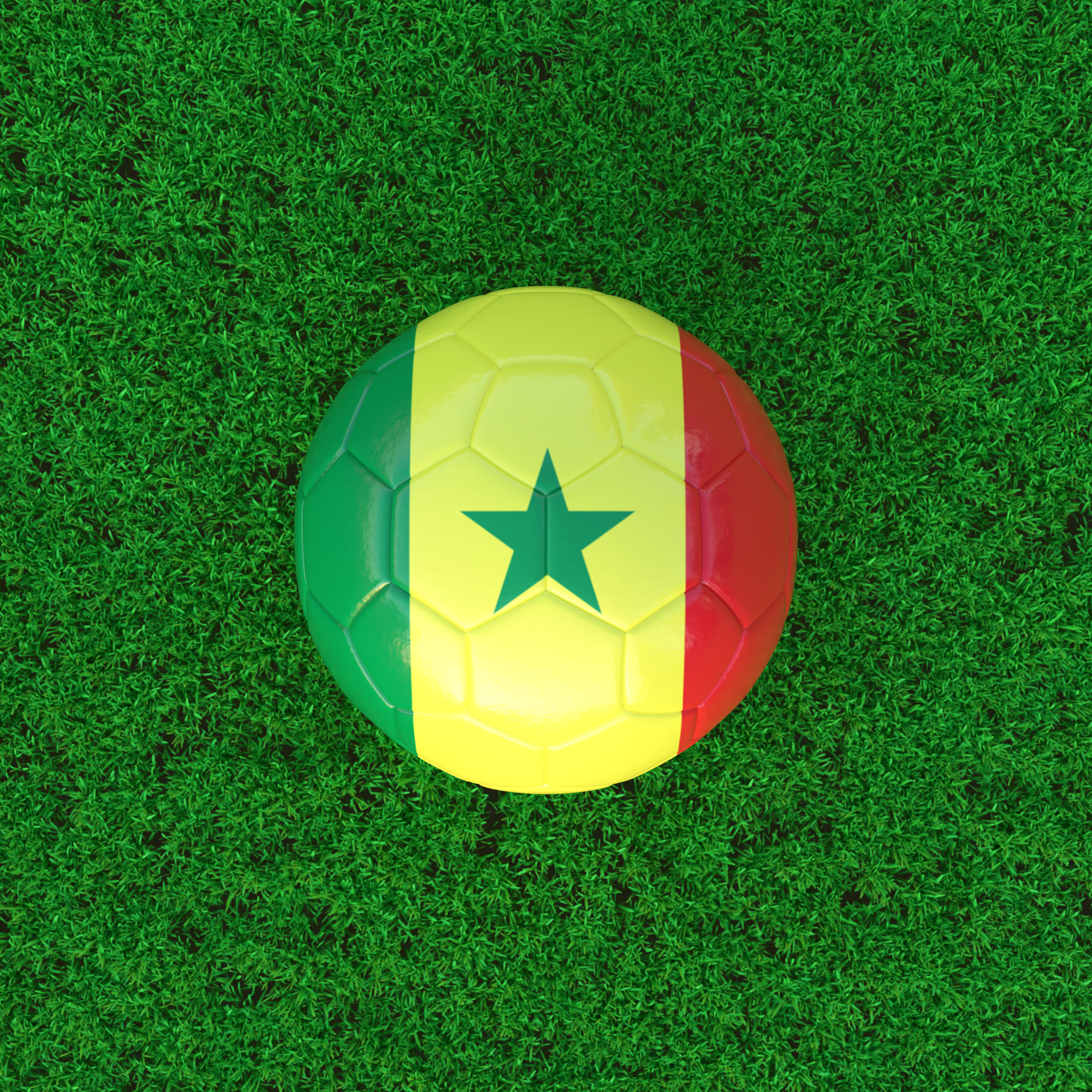 Flag of The Gambia on a Soccer Ball with a Grass Background